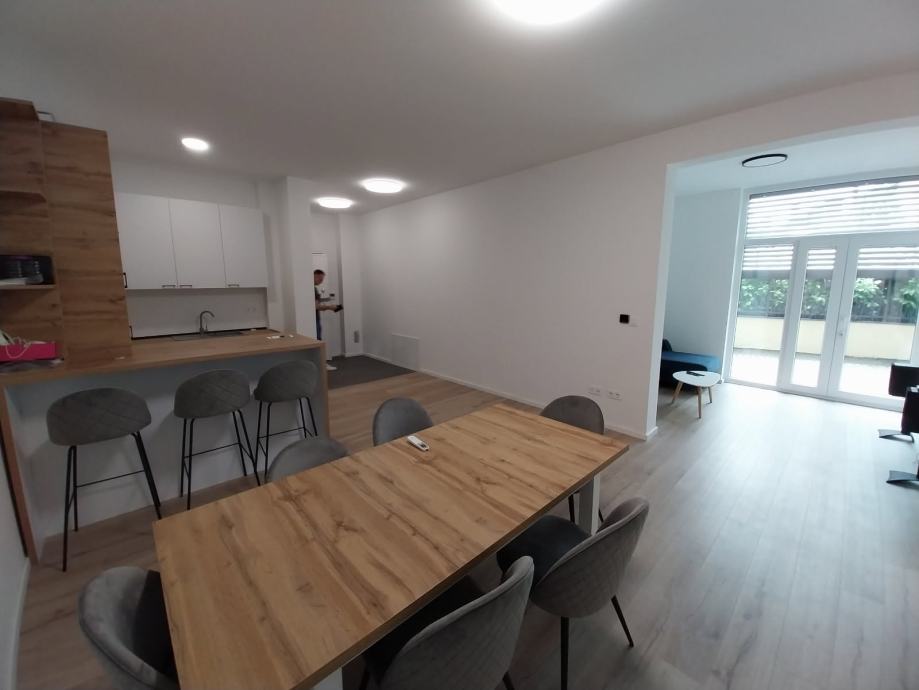 Nudimo za prodaju dvosoban komforan prostrani stan odličnog rasporeda prostorija u prizemlju novije stambene zgrade građene 2022 godine. Stan se nalazi na ekskluzivnoj i atraktivnoj lokaciji u strogom centru Gornjeg grada Osijeka u neposrednoj blizini Konkatedrale i promenade. Stan se nalazi u prizemlju stambeno poslovne zgrade s dizalom. Stambena površina stana prostire se na 70,67m2, a sastoji iz klimatiziranog prostranog dnevnog boravka povezanog sa kuhinjom i blagovaonicom sa izlazom pripadajući vrt površine 24,40m2, prostrane spavaće sobe s garderobom i izlazom na isti vrt, kupaonice i hodnika. Stan ima pripadajuće parking mjesto u ograđenom dvorištu zgrade s automatskim ulaznim vratima na daljinsko upravljanje.Grijanje je centralno plinsko - kondenzacijski kombi bojler najnovije generacije, troslojna vanjska pvc stolarija, hrastov parket, kvalitetne i moderne sanitarije i keramiku, vrhunska termo fasada. Stan ima ugrađen klima uređaj, videoportafon, sva brojila odvijena. U svim sobama tv, telefon, internet.
