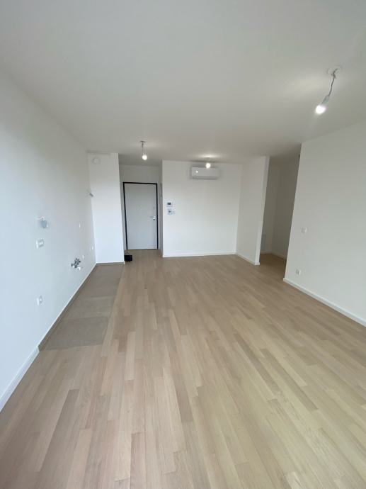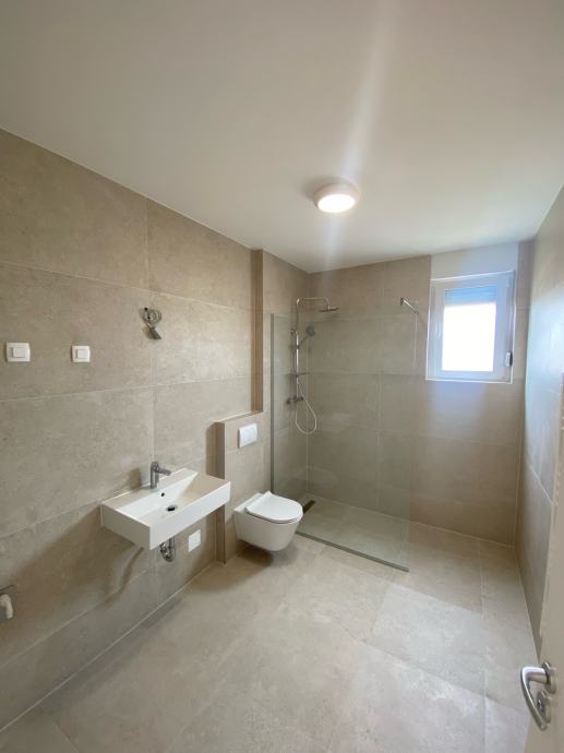 STAN SE SASTOJI OD : 1 spavaće sobe, dnevnog boravka, 1 kupaonice, ulaznog hodnika te terase sa velikim dvorištem. Klima uređaji se nalazi u svakoj prostoriji, te su roletne u dnevnom boravku električne. Uz stan dolazi jedno parkirno mjesto. Stan dolazi uz kuhinju, ostatak stana nije namješten.