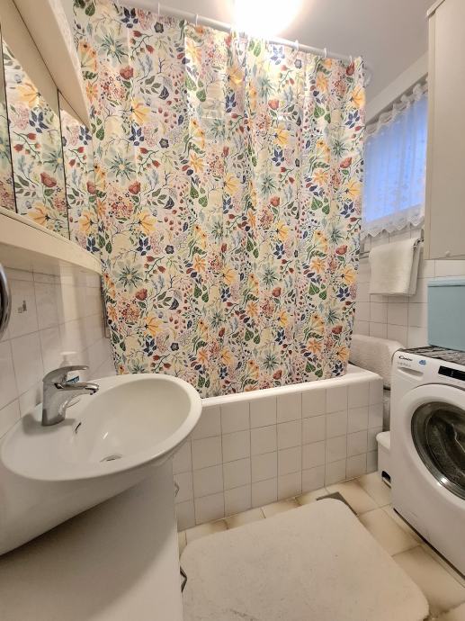 Stan je opremljen svim potrebnim namještajem, kuhinja dolazi s posuđem, hladnjakom,zamrzivačem, a dodatnu udobnost osiguravaju klima-uređaj, perilica rublja, sušilica za rublje, robotski usisavač, usisavač na žicu i televizija u boravku te u spavaćoj sobi.