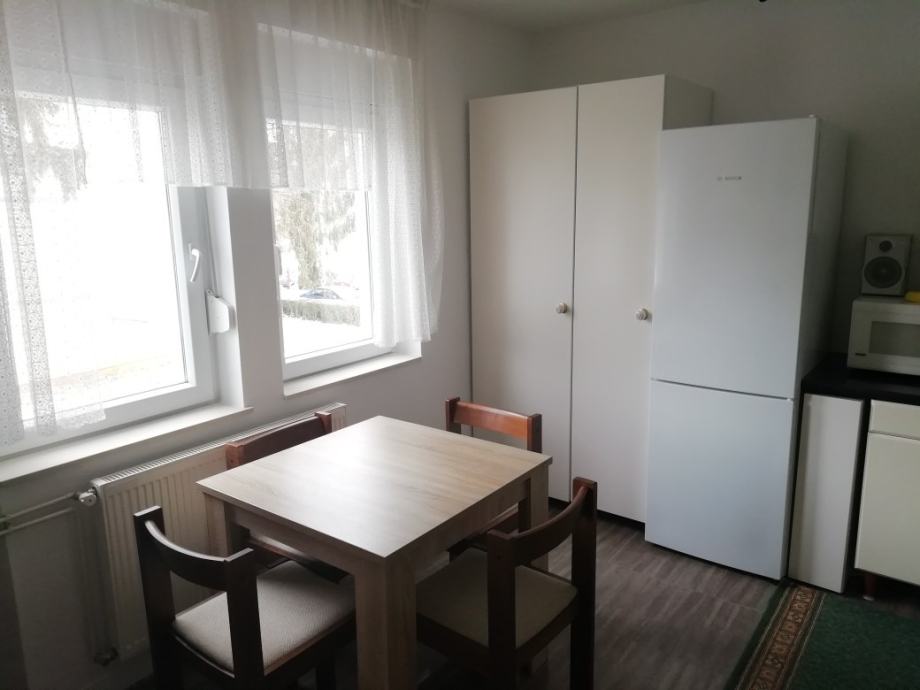 Iznajmljuje se stan u ulici Mate Ujevića na prvom katu stambene zgrade. Stan se sastoji od spavaće sobe, dnevnog boravka, hodnika i kuhinje s blagovaonom. Stan se iznajmljuje kompletno namješten. Nalazi se u blizini svih aktualnih sadrzaja. Isključeni kućni ljubimci i djeca. Stan nudi spremište za korištenje. VAŽNO! Pri useljenju plaća se najam 450,00 eura + polog u iznosu od 450,00 eura, a onda naknadno režije za mjesec koji slijedi. Za sve informacije kontaktirati 097 680-8847 (Kristina)