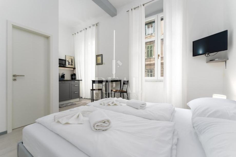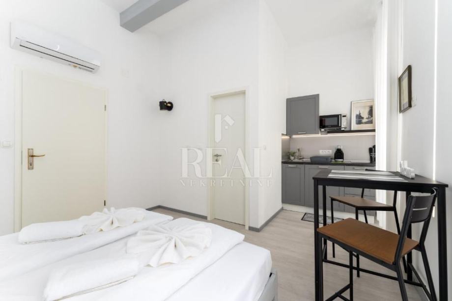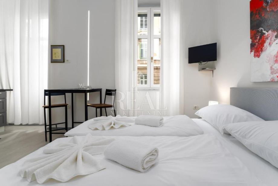 Iznajmljujemo u razdoblju od 15.09.2024. do 15.06.2025. godine lijepo uređeni studio apartman u strogom centru grada. Moderno je opremljen i renoviran, otvorenog koncepta sa spavaćom sobom, kuhinjom s blagovaonicom i kupaonom. Grijanje/ hlađenje je na klimu. Nalazi se u neposrednoj blizini Korza te brojnih sadržaja. Polog se plaća u visini jedne mjesečne najamnine.