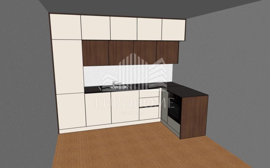 Kuhinja će biti ugrađena trenutno je u izradi, galeriji slika je prikazan render kuhinje.