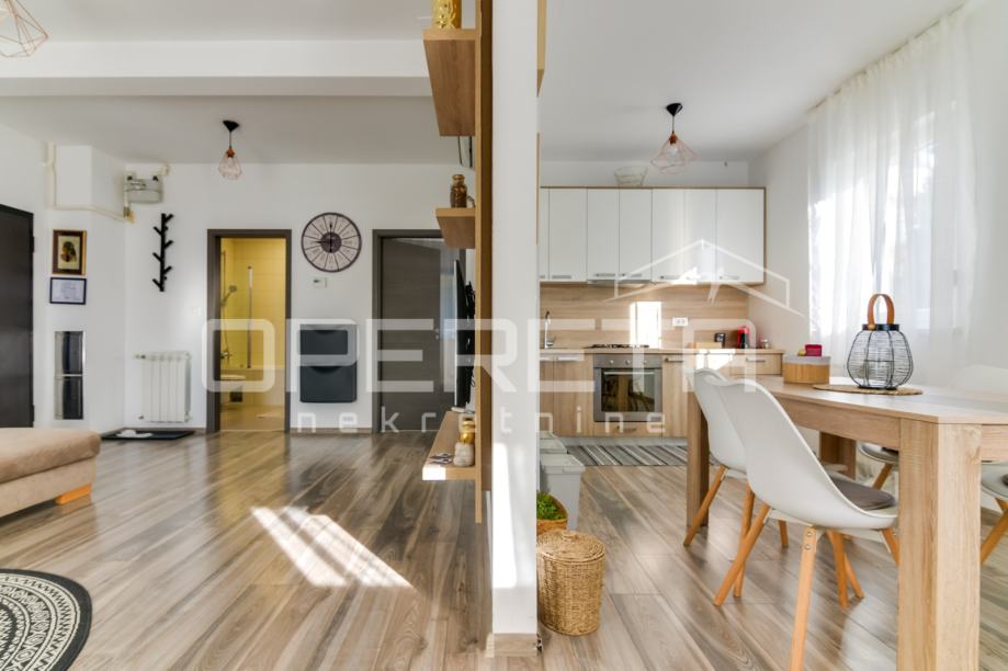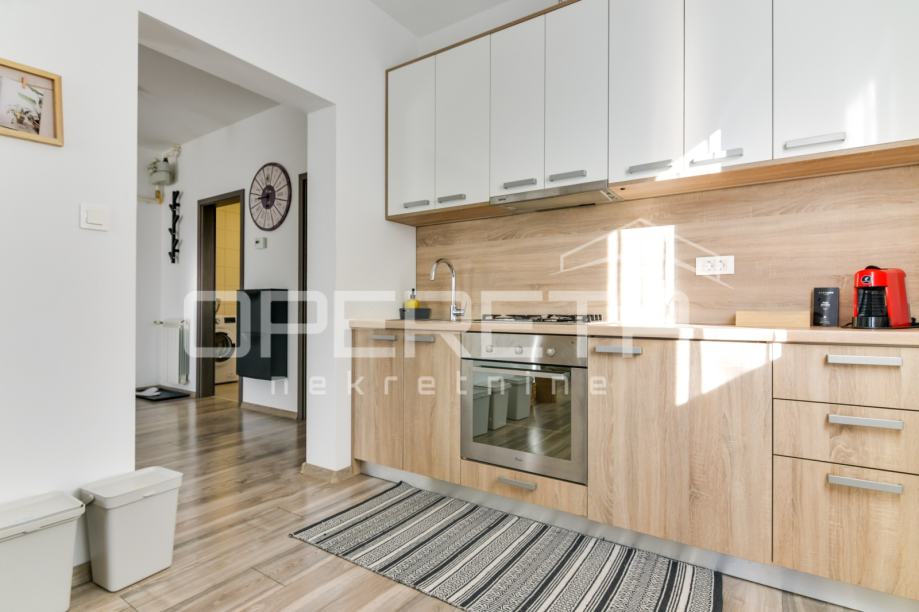 Prostor se sastoji od open space prostorije, kuhinje sa blagovaonicom, kupaonice i još jednog ureda.