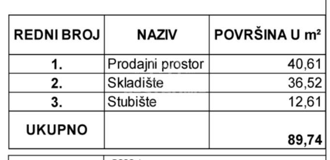 Najam uličnog poslovnog prostora u stambenoj/poslovnoj zgradi sveukupne površine 308,72 m2. Prostor se sastoji od tri etaže (podrum83,57 m2, prizemnlje 89,74 m2 i 1. kat 135,41 m2). Prikladan je za trgovinu, Uredske namjene (odvjetnik, javni. ilježnik, te dr. uredske djelatnosti), oridinacije,...