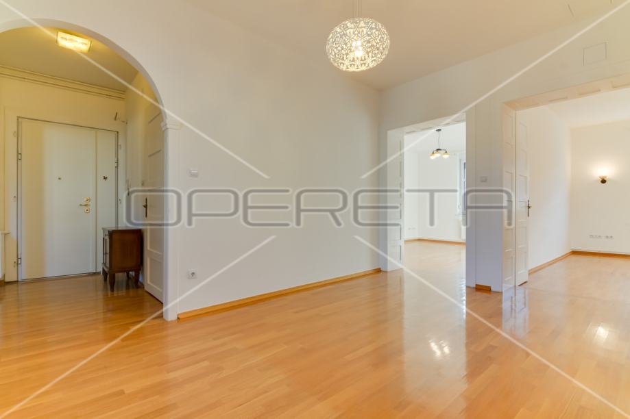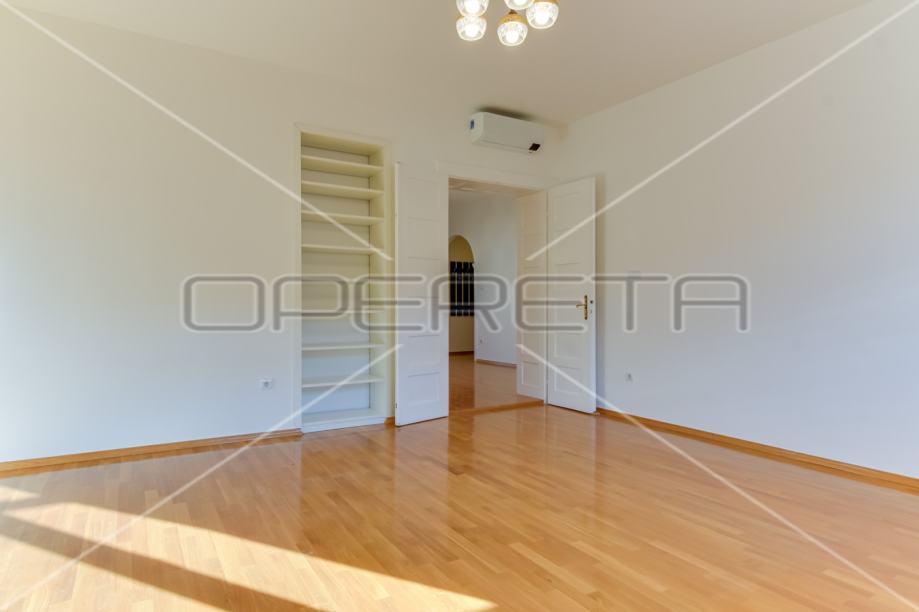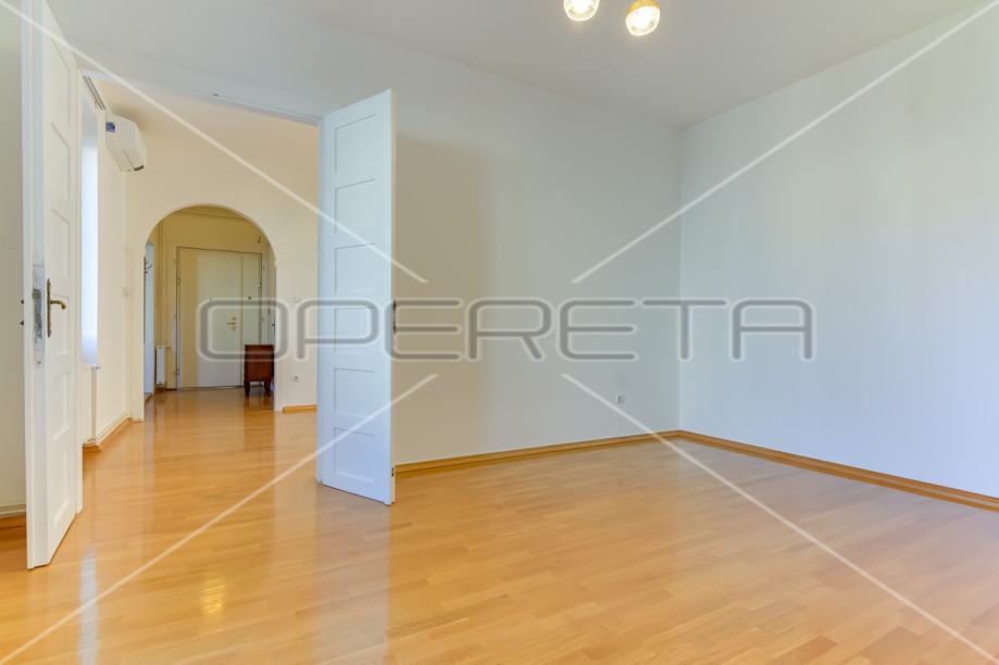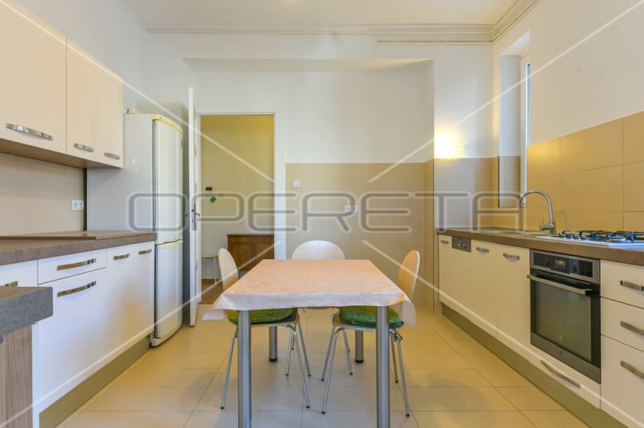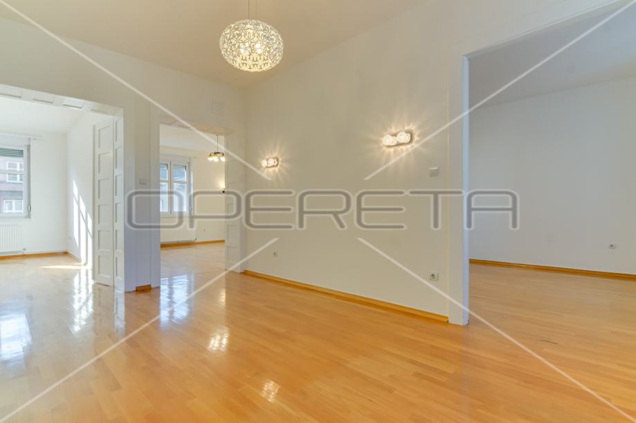 Iznajmljuje se stan veličine 125m2, 4-sobni, nenamješten, novoadaptiran 2023. godine, na 3.katu konstrukcijski obnovljene zgrade s liftom. Sastoji se od 4 prostorije, kupaonice, zasebnog toaleta, kuhinje s izlazom na balkon i male ostave i u potpunosti je klimatiziran.