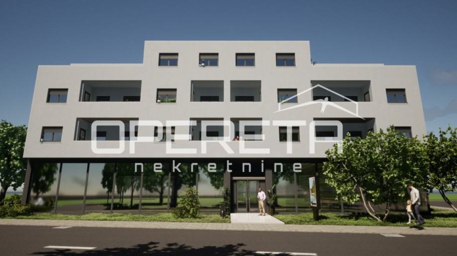 Iznajmljuje se poslovni prostor u prizemlju novoizgrađene stambeno-poslovne zgrade na odličnoj lokaciji u blizini Samoborske ulice i ul. Velimira Škorpika. Prostor ima odličnu vidljivost sa prometnice jer je cijelom dužinom ostakljen velikim staklenim stijenama, stolarija je aluminijska. Radi visine prostora (4,15m) i malo nosivih zidova, različite mogućnosti prenamjene prostora. U cijeni je i dvorište (151,47m2) koje pripada prostoru. Ispod poslovnog prostora je garaža sa 18 parkirnih mjesta i 28 vanjskih parkirnih mjesta. Dva ulaza u poslovni prostor - Ulični ulaz u poslovni prostor i dolazak dizalom iz garaže kroz zajednički prostor (glavni ulaz u zgradu). Postoji mogućnost postavljanja loga na vrh poslovno stambene zgrade. Moguće uređenje poslovnog prostora po zahtjevima kupca.