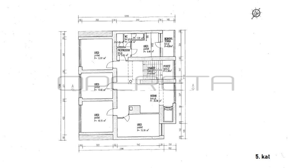 Daju se u zakup poslovni prostori na petom katu poslovne zgrade na odličnoj lokaciji na Kvaternikovom trgu. Izvrsna lokacija - tramvajska i autobusna zona. Poslovni prostori sastoje se od 5 uredskih prostorija, ulaznog dijela, sanitarnog čvora i balkona. Dostupna su i dva skladišna prostora za zakup. Uredski prostori su namješteni ali zakupoprimac može namijesiti svojim namještajem. Cijena zakupa iznosi 22 eur/m2 s uključenim režijskim troškovima + PDV. Parking je dostupan u obližnjim garažama (3 dostupne garaže). Prilika!