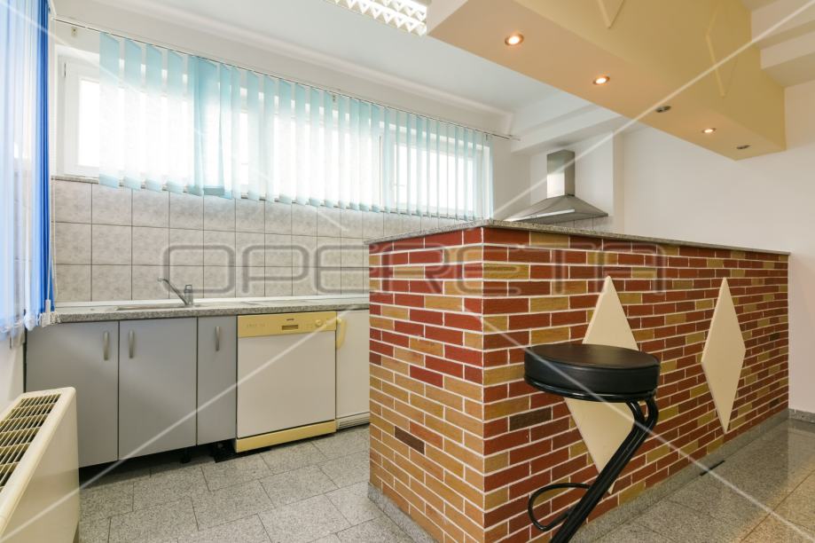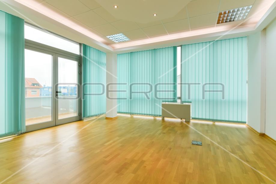 Sastoji se od ulaznog dijela, velikog open space prostora, 4 uredske prostorije, kuhinje s blagovaonicom, terase i sanitarnih čvorova. Prostor je primjeren za uredsku djelatnost. Postoji mogućnost parkinga u dvorištu uz nadoplatu. Na predočenu cijenu se obračunava PDV.