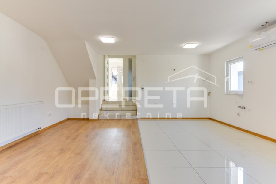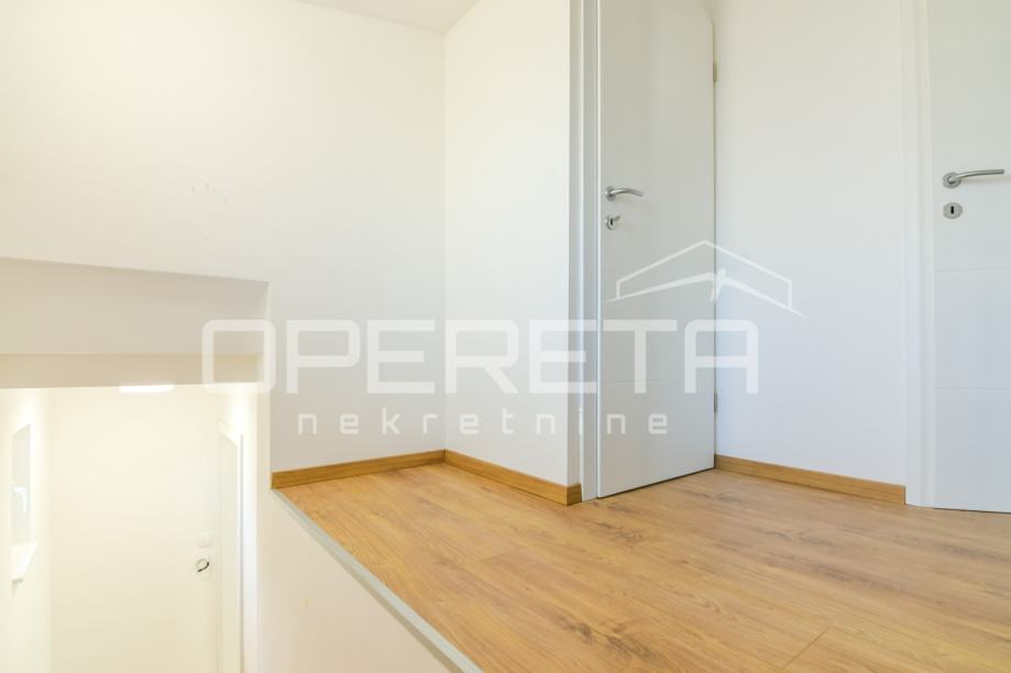 Na prvom katu prostor se sastoji od ulaznog dijela, manjeg ureda, kupaonice i velikog open space prostora sa izlazom na terasu.