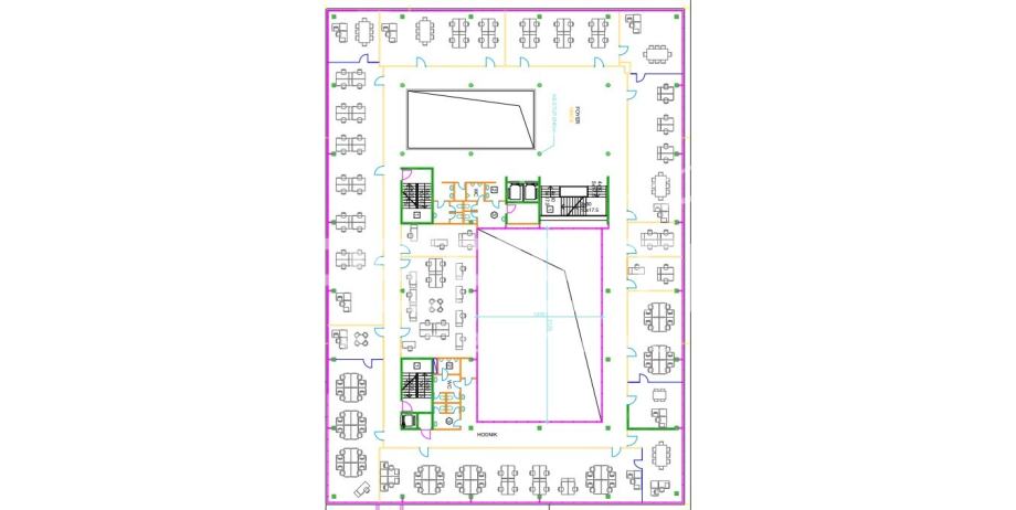 Prostor se sastoji od 8 velikih ureda (open space koncepta) u kojima je prostor za rukovoditelje odvojen staklenim stijenama od operativnog dijela, te tri prostora manje kvadrature cca 25m2, također i 2 para sanitarnih čvorova (muški i ženski). Pristup samom prostoru je osiguran s 3 lifta i stepeništem.