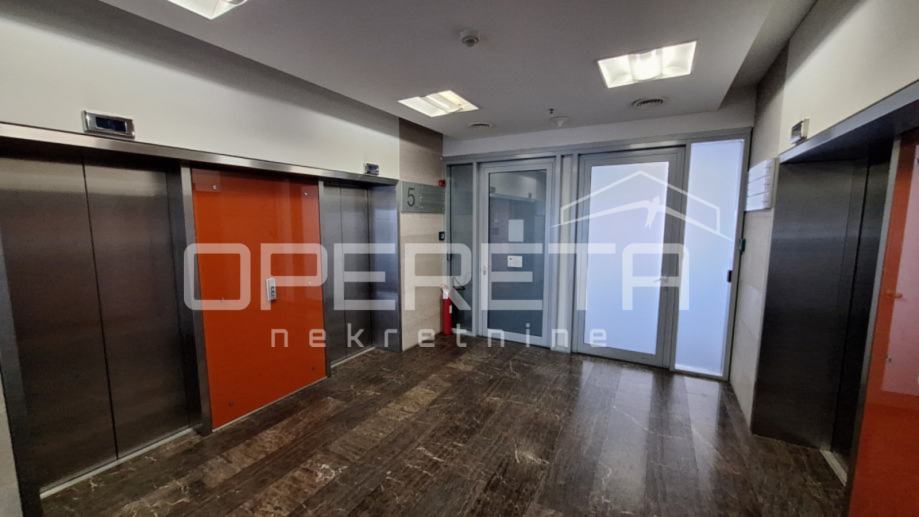 Daje se u zakup poslovni prostor ukupne površine 296 m2 na 5. katu moderne poslovne zgrade i sastoji se od dva velika uredska open space prostora i jedne sobe, čajne kuhinje te sanitarnih čvorova. Prostor ima dva ulaza, glavni ulaz sa zajedničkog ulaznog hodnika gdje su liftovi i sporedni ulaz sa stubišta. Pregradni zidovi izvedeni su od knaufa te ih je moguće prilagoditi potrebama zakupnika. Objekt je opremljen protupožarnim i protuprovalnim alarmom, sustavom kontrole pristupa, 24-satnim osiguranjem i video nadzorom. Sve uredske prostorije imaju pogled na zapad. Svi prozori su opremljeni električnim roletama i otvaraju se na ventilirajuću fasadu. Parkirna mjesta dostupna su na upit.