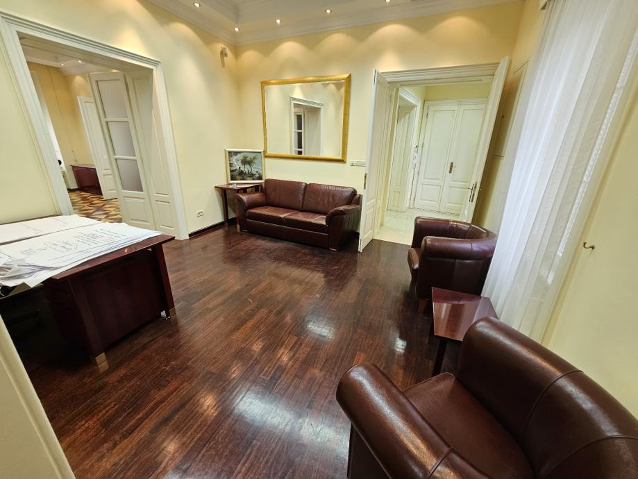 Iznajmljuje se prostran i svijetao stan površine 127 m2 na drugom katu zgrade u centru Zagreba u Mesničkoj ulici.