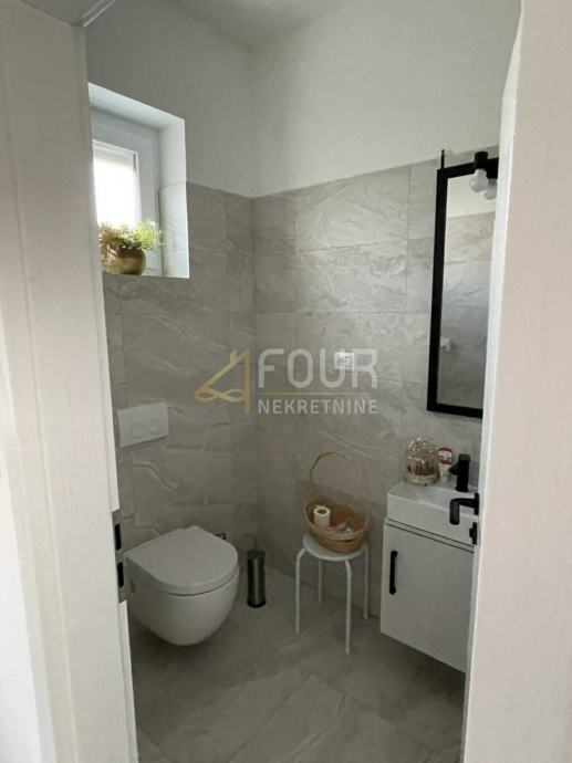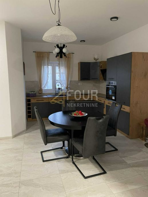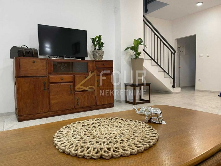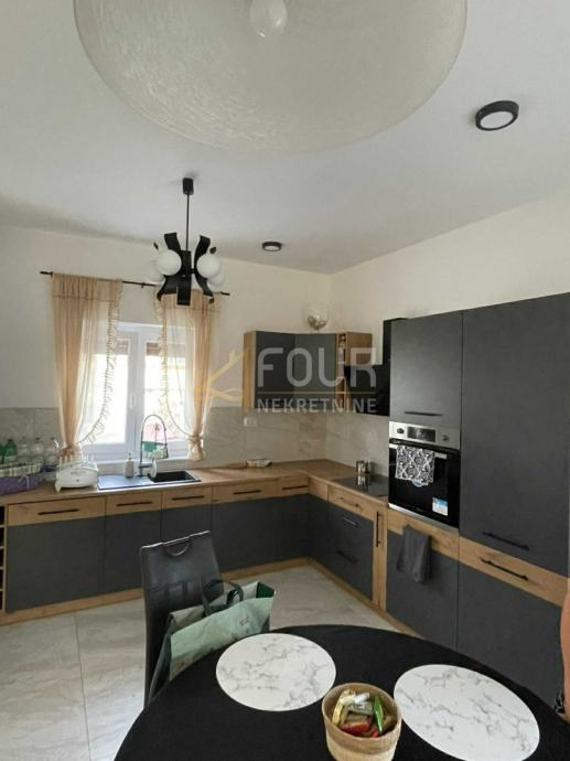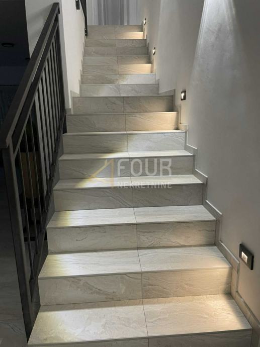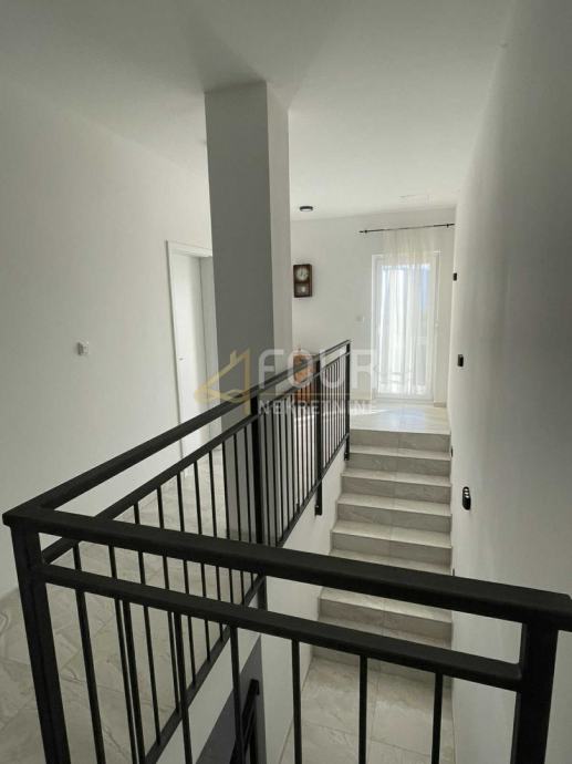 Na prvoj etaži nalazi se moderna kuhinja s kvalitetnim aparatima, blagovaonica, dnevni boravak, kupaonica, ostava i dva balkona koji pružaju obilje svjetla i osjećaj otvorenosti. Na gornjoj etaži smještene su tri spavaće sobe, dodatna kupaonica i vešeraj, uz još dva balkona koji upotpunjuju dojam prostranosti i komfora.