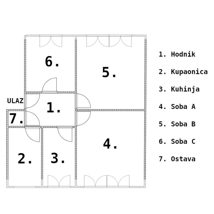 Iznajmljuje se potpuno namješten stan površine 65 m² na prvom katu zgrade u mirnom dijelu kvarta Volovčica (Pešćenica), Zagreb. Blizu je studentski kampus Borongaj. Stan se sastoji od tri spavaće sobe, kuhinje, kupaonice, WC-a, smočnice i predsoblja. Svaka soba opremljena je krevetom za jednu osobu i radnim stolom, što ga čini idealnim za studente ili više osoba koje žele vlastiti mir i privatnost.