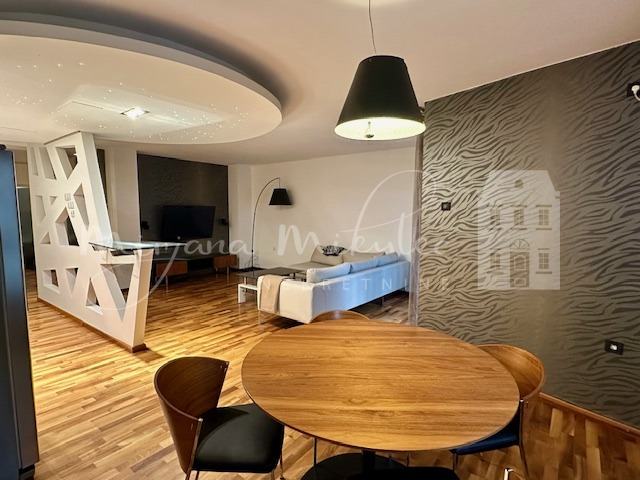 Iznajmljuje se kompletno namješten i opremljen ( perilica rublja, sušilica rublja, tv...). Centralno etažno grijanje, klima uređaj.