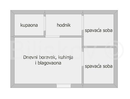 Stan se sastoji od prekrasno uređenog i komfornog dnevnog boravka u sklopu kuhinje i blagovaone (otvoreni koncept), hodnika, dvije spavaće sobe i kupaone.