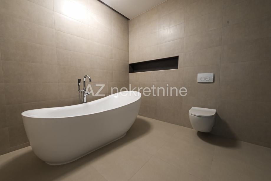 Stan je kompletno opremljen dizajnerskim namještajem i namještajem po mjeri, podne obloge su talijanska keramika i drveni parket; grijanje na plin, podno grijanje u kupaonicama, klime, električno podizanje roleta, protuprovalni i video nadzor.