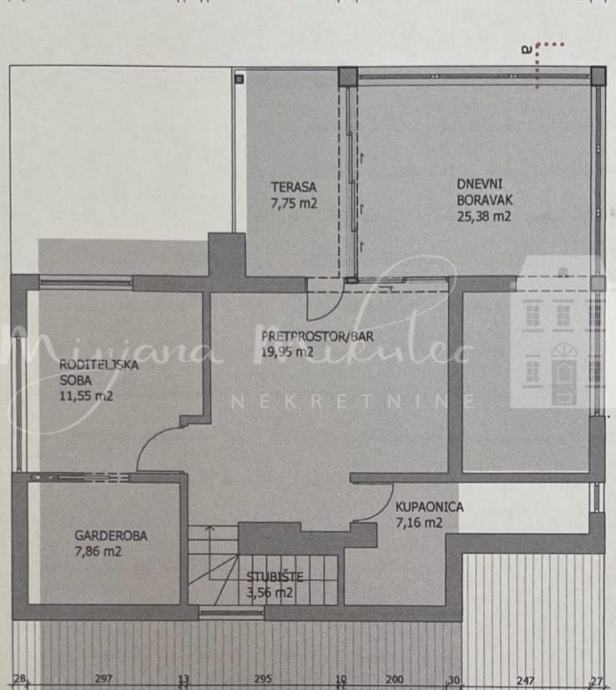 Pripada mu i garaža te postoji mogućnost dogovora za dodatno vanjsko parkirno mjesto.