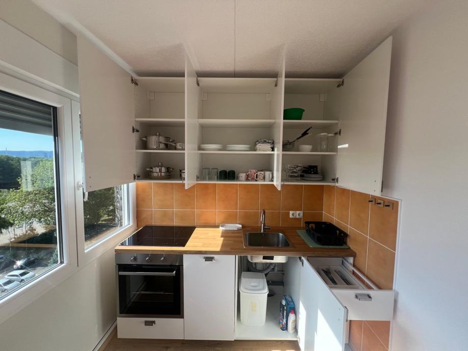 Iznajmljuje se moderno uređen jednosobni stan površine 31 m², smješten na visokom 7. katu održavane stambene zgrade s liftom. Stan je temeljito adaptiran te se po prvi put iznajmljuje – sve je novo, svježe i spremno za useljenje.