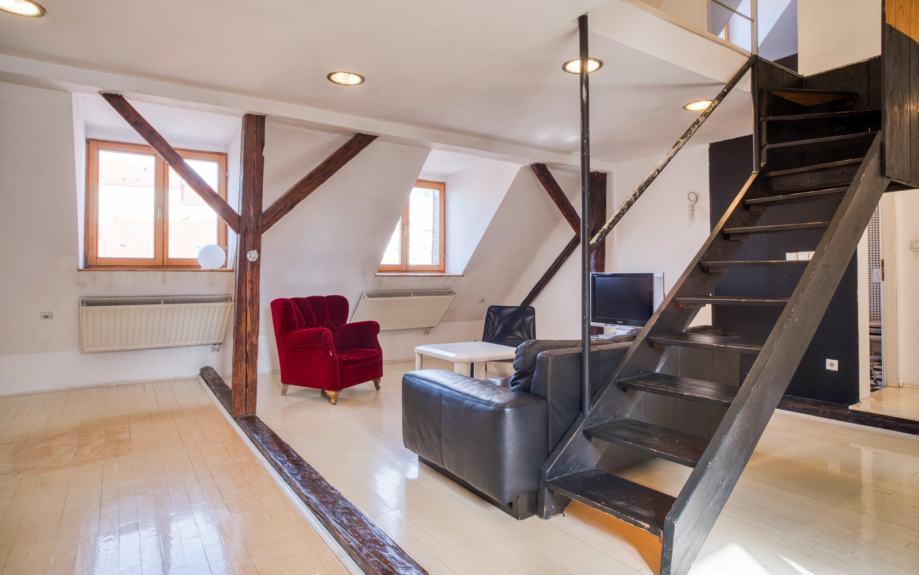 Iznajmljuje se atraktivan trosoban stan od 96 m2 na 1. katu zgrade izgrađene sredinom 18. stoljeća. Iznimno lijepo uređen interijer!