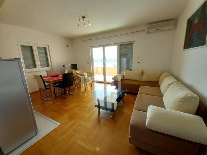 Namješten apartman ukupne površine 49m2 + terasa 13 koja ima pogled na more. Nekretnina se sastoji od spavaće sobe , dnevnog boravka , kuhinje s blagovaonicom , kupaonice te prostrane terase s koje se pruža pogled na more koje je udaljeno 500 m. Zbog blizine grada Trogira te same zračne luke izvrsna prilika za investiciju u turističke svrhe. Nekretnina ima sve dokumente i dozvole.