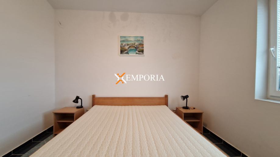 Apartman se sastoji od kuhinje, blagovaonice i dnevnog boravka, dvije spavaće sobe, kupaonice te dvije natkrivene terase koje pružaju dodatni prostor za opuštanje i boravak na otvorenom. Uz stan dolazi i jedno vanjsko parkirno mjesto, koje će biti osigurano kao vanknjižno vlasništvo.OpremaZgrada je građena od cigle, a apartman je opremljen PVC stolarijom s griljama. Podovi su obloženi pločicama, a za hlađenje je ugrađen jedan klima uređaj. Apartman se prodaje s namještajem, što olakšava useljenje ili iznajmljivanje.