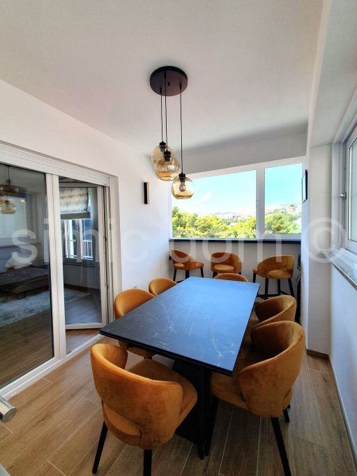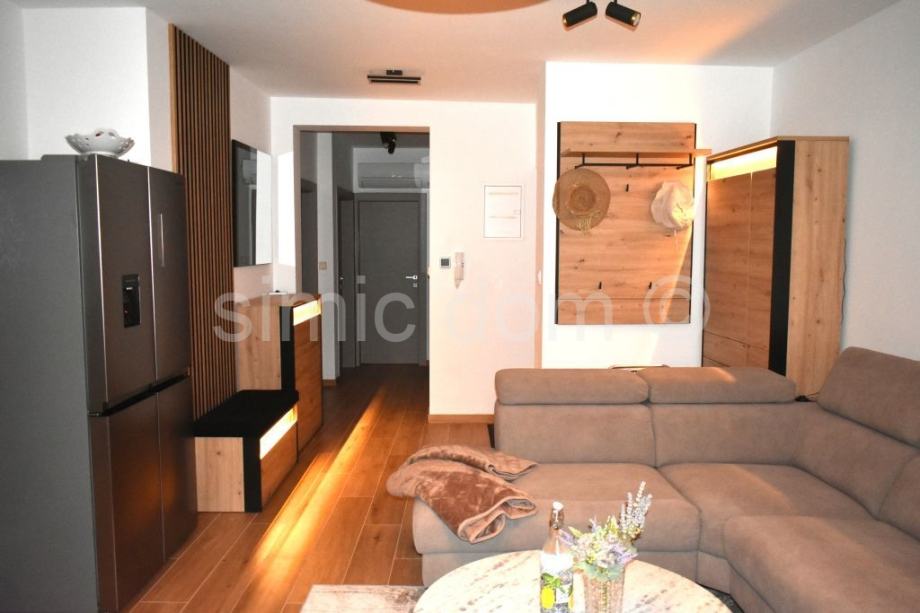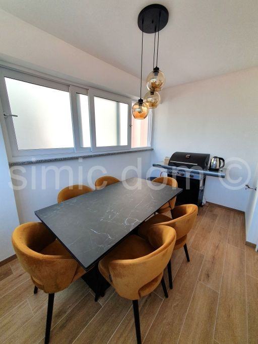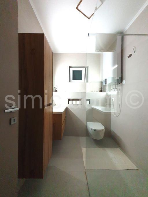 Na prodaju je potpuno renoviran i vrhunski opremljen apartman smješten na drugom katu zgrade u Okrugu Gornjem. Apartman se nalazi na vrhunskoj lokaciji svega nekoliko koraka od mora i popularne šljunčane plaže. Apartman je u potpunosti adaptiran i namješten 2024. godine. Sastoji se od ulaznog prostora, prostranog dnevnog boravka s izlazom na ostakljenu loggiu, moderne kuhinje izrađene po mjeri, dvije prostrane spavaće sobe i kupaonice te ima ukupnu površinu od 59 m2. Apartmanu pripada i vanjsko parkirno mjesto. Prostrana loggia ostakljena je kliznim stijenama te nudi pogled na more i zelenilo i služi obitelji kao blagovaonica. Opremljena je dodatnim priključkom za vodu, prostorom za roštilj i mini barom, što ju čini idealnim prostorom za boravak u svim vremenskim uvjetima. Podno grijanje instalirano je u dnevnom boravku, kuhinji, hodniku i kupaonici, dok su spavaće sobe obložene kvalitetnim lakiranim parketom, pružajući dodatni osjećaj udobnosti. Lokacija apartmana je odlična, centar Trogira udaljen je 1,6 km, a Zračna luka Split samo 7 km. U blizini se nalaze svi ostali potrebni sadržaji trgovine, kafići, restorani... Ovaj apartman predstavlja odličnu priliku za obiteljski život ili kao investicija za turistički najam. Vlasništvo uredno.