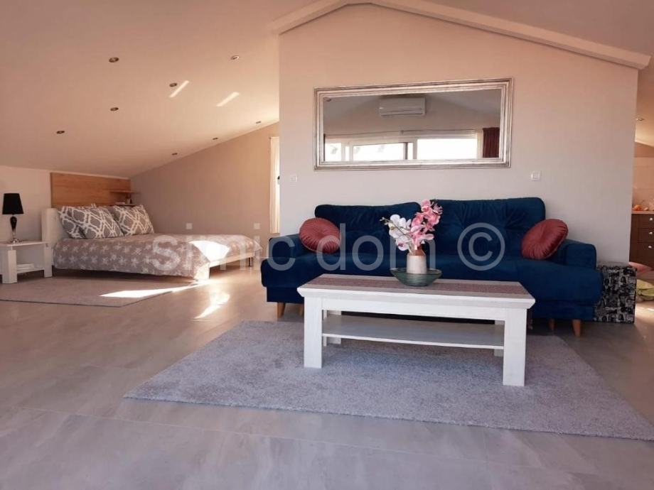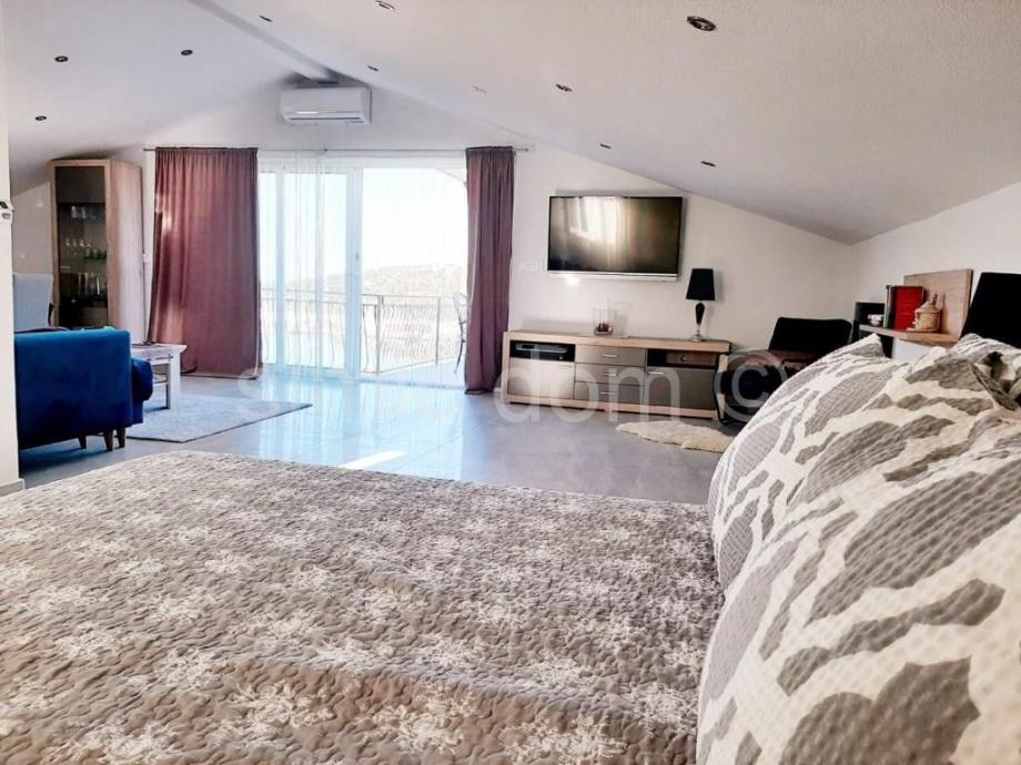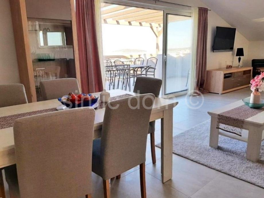 Na prodaju je predivan apartman smješten u manjoj zgradi u samom srcu Rogoznice. Zgrada je udaljena samo 200m od mora i isto toliko od centra Rogoznice i svih sadržaja. Apartman se nalazi na drugom katu i ukupne je neto korisne površine 87 m2, od čega je 65m2 unutarnje površine. Apartman ima pripadajuće spremište neto korisne površine 6,44 m2, natkrivenu terasu neto korisne površine 7,99 m2, natkriveni balkonom neto korisne površine 1,34 m2 te dvorište neto korisne površine 4,21 m2 i parkirališno mjesto neto korisne površine 2,50 m2. Apartman se sastoji od kupaonice, kuhinje s blagovaonicom otvorenog koncepta sa spavaćom sobom koja se po želji može pregraditi, tu je i prostrani dnevnim boravak koji ima izlaz na prostranu terasu sa zaista lijepim pogledom na more i cijelu Rogoznicu, a tu je i natkriveni balkon. Apartmanu pripada i jedno parkirno vanjsko mjesto uključeno u cijenu. Apartman je namješten, opremljen i klimatiziran. Zgrada je kompletno renovirana 2018. godine. Apartmani u zgradi kao i parkirna mjesta su uredno etažirani. Vlasništvo uredno.