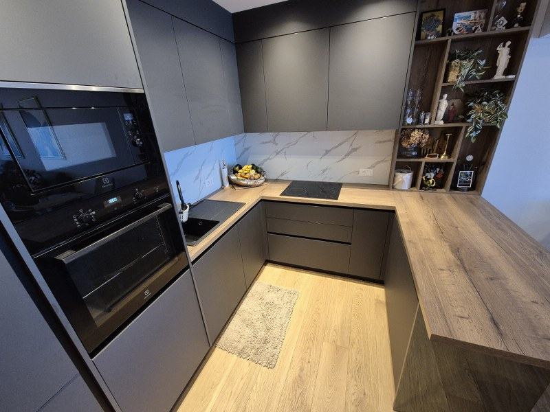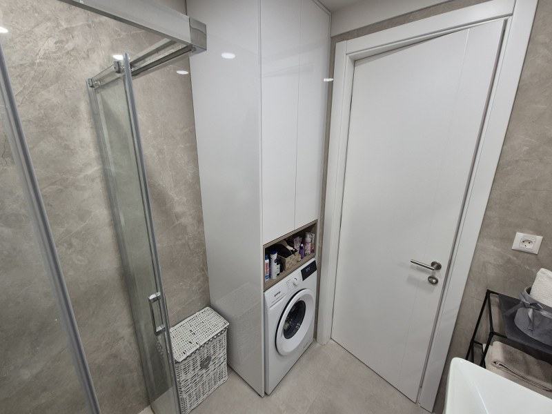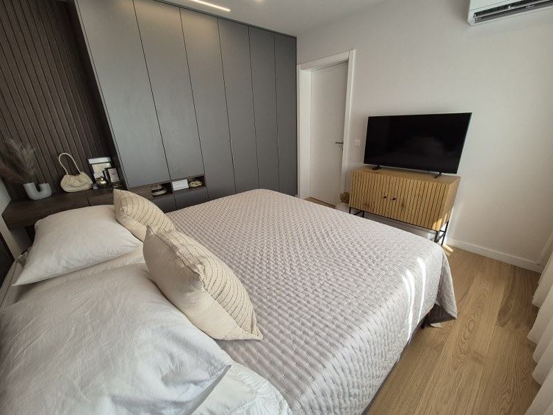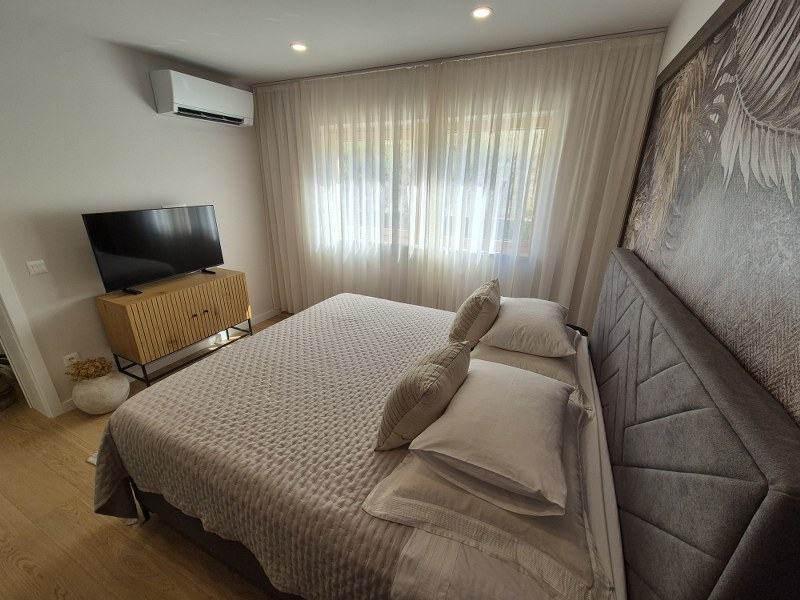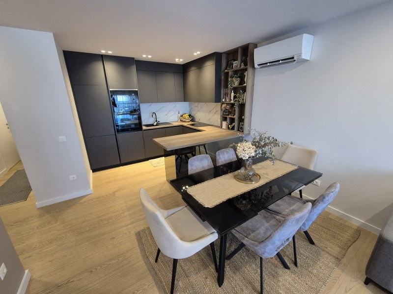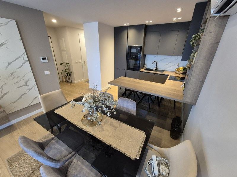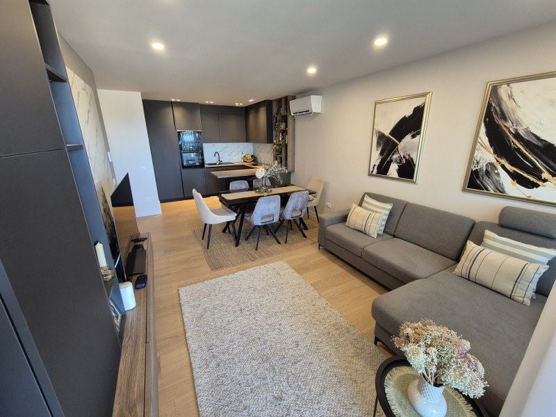 Stan je potpuno kvalitetno opremljen, namješten i klimatiziran posebnim klimama. U kuhinji su aparati renomirani svjetskih proizvođača, sav namještaj je rađen po mjeri te se kao takav i prodaje.
