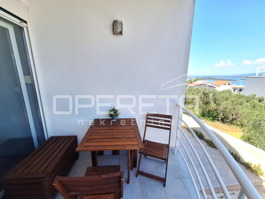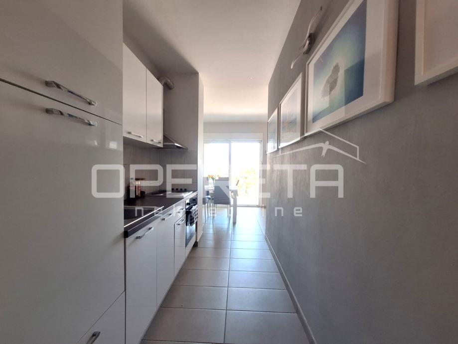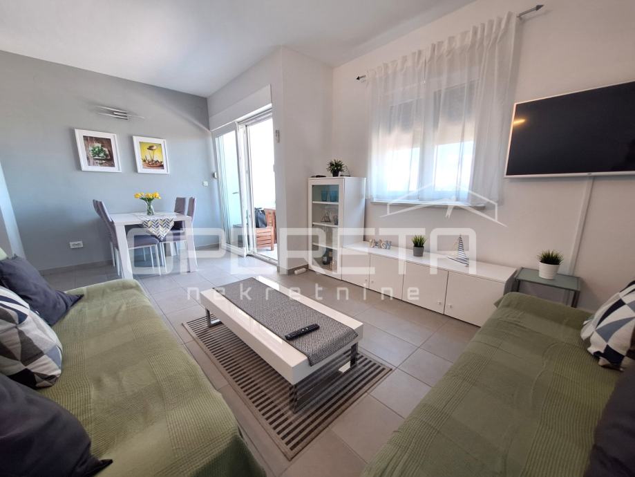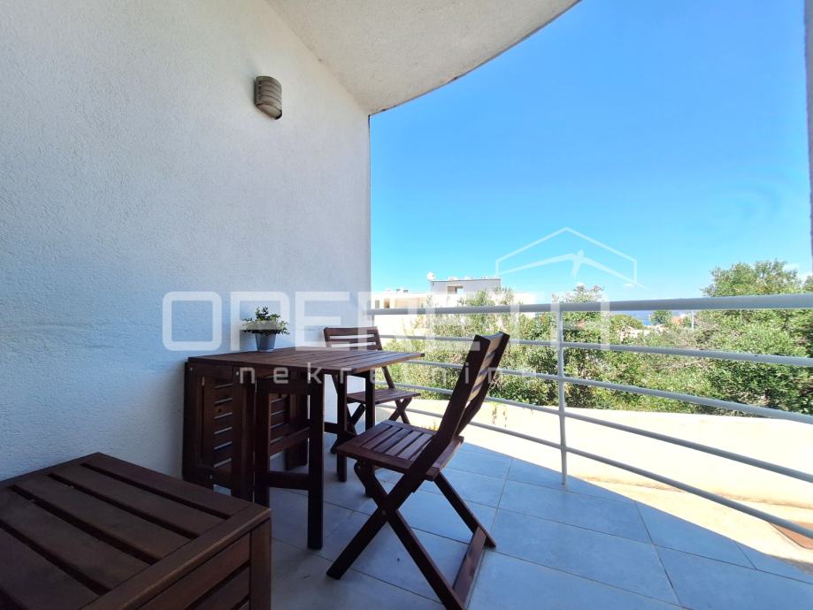 Sastoji se od 2 spavaće sobe, kupaonice, kuhinje, dnevnog boravka i blagovaonice, te loggie s pogledom na more i otoke. Pripada mu spremište u podrumu i parkirno mjesto u dvorištu zgrade.