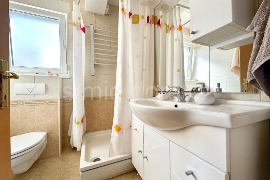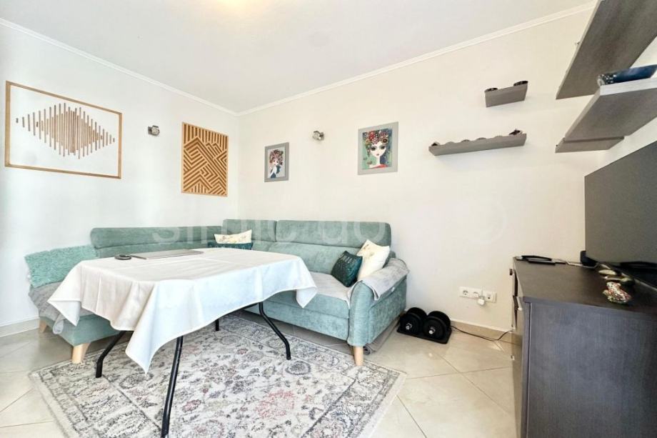 Na prodaju je odličan namješten apartman smješten na drugom katu manje zgrade svega dvije minute pješice od plaže. U blizini apartmana nalazi se i trgovina kao i kafići i restorani. Apartman se nalazi na drugom katu te ima ukupnu unutarnju površinu od 42,24 m² te još 7,30 m² terase, apripada mu i vanjsko parkirno mjesto. S pripatcima apartman ima neto površinu od približno 48,90 m² . Sastoji se od hodnika, kupaonice, spavaće sobe, kuhinje te dnevnog boravka sa blagovaonicom iz kojeg se izlazi na lođu s prelijepim pogledom. Apartman je spreman za useljenje i odlična je investicija kako za najam tako i za življenje. Vlasništvo uredno.