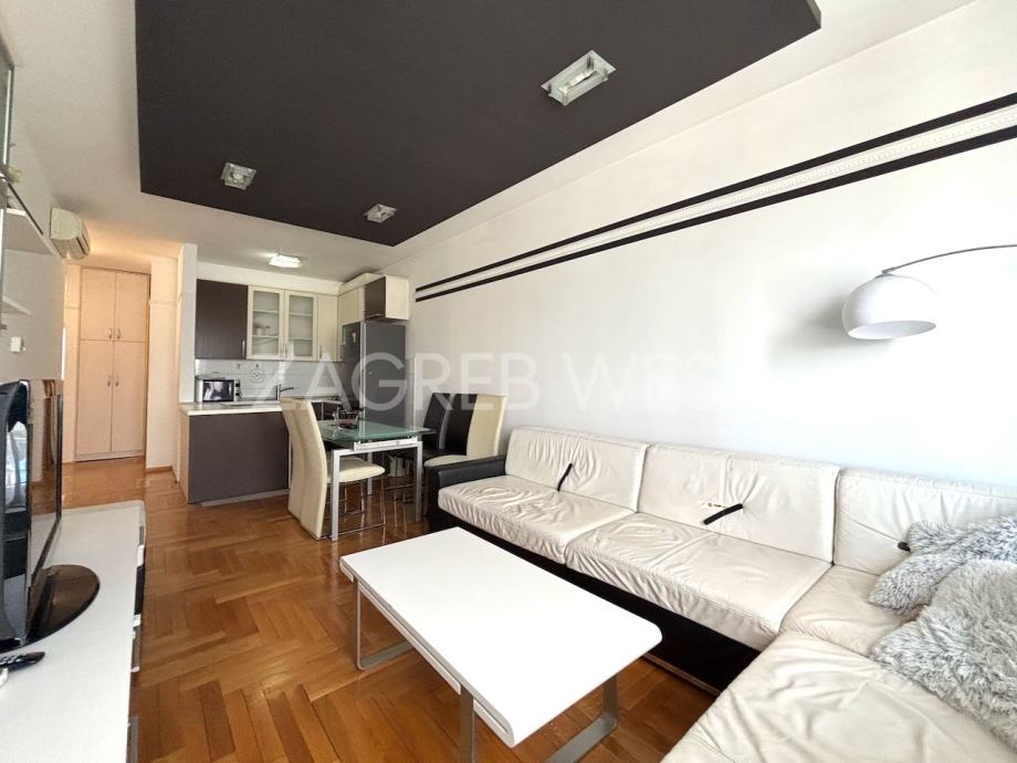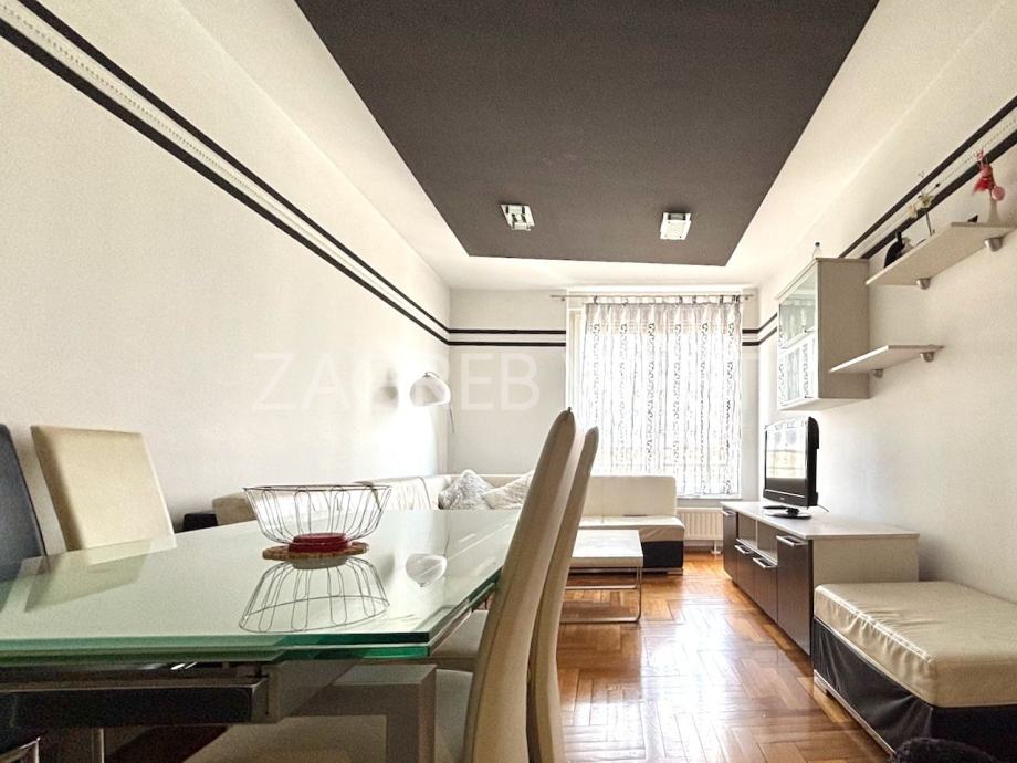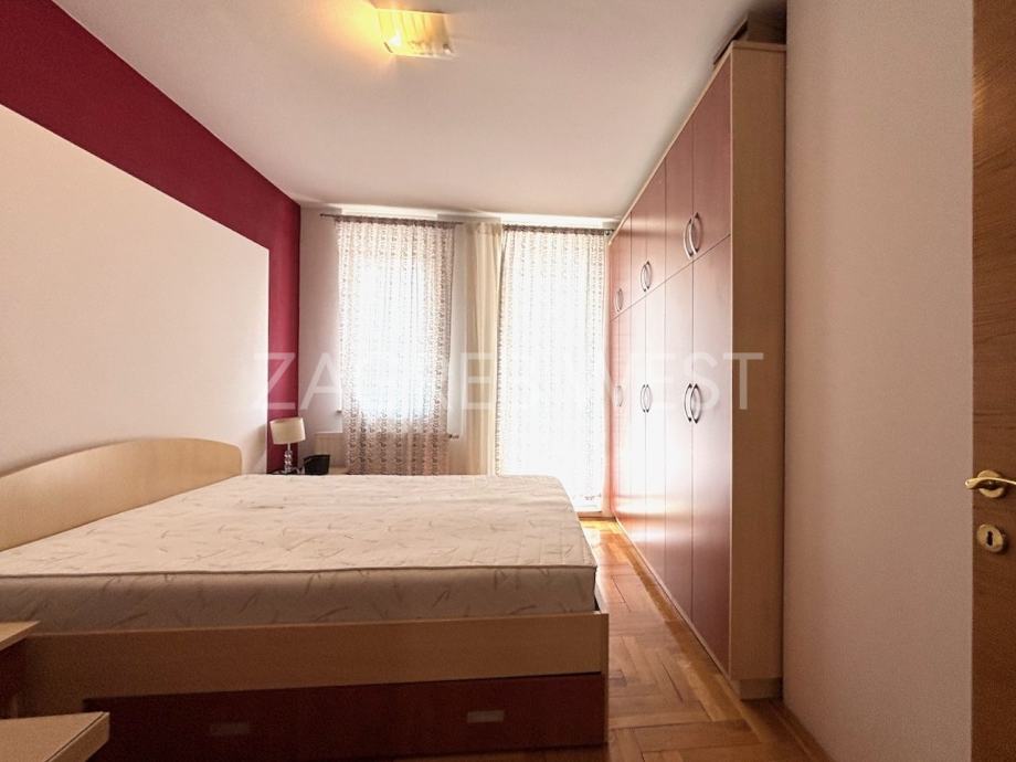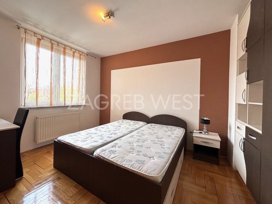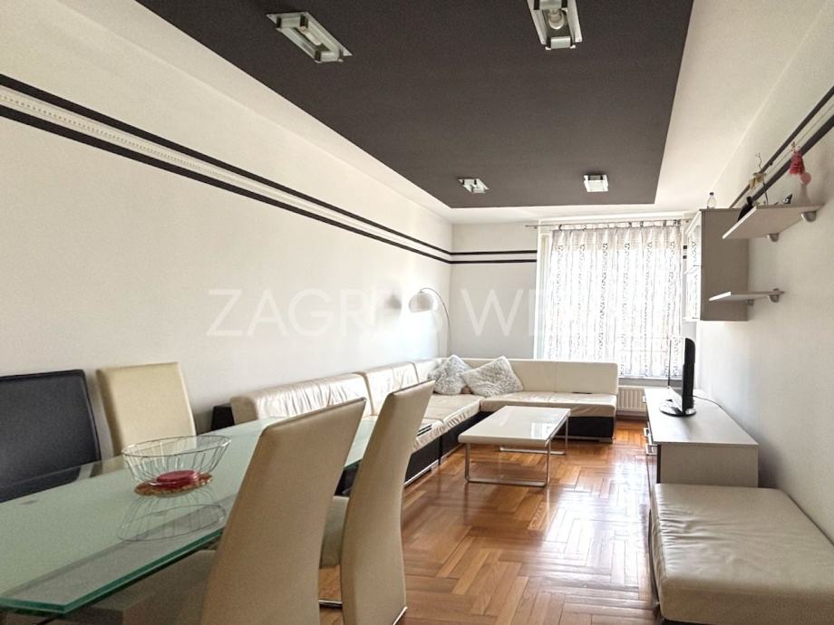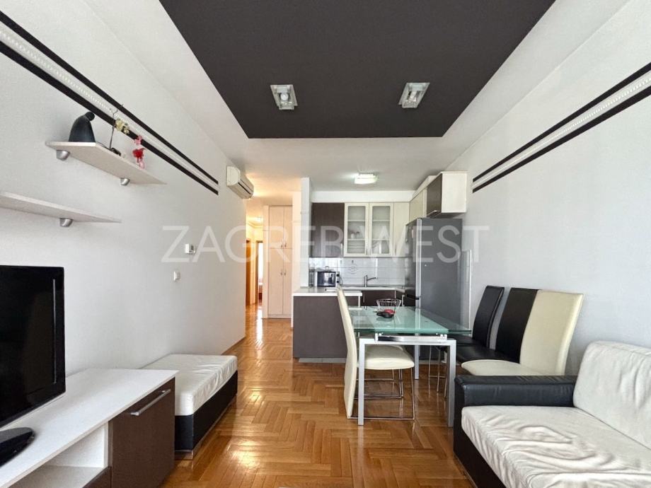 Potpuno namješten i opremljen stan na 3. katu novije zgrade s liftom, na dobroj lokaciji na Trešnjevci u blizini svih sadržaja i javnog prijevoza. Sastoji se od dnevnog boravka s kuhinjom i blagovaonicom, 2 spavaće sobe, balkona, kupaonice i wc-a. Dolazi sa spremištem i dva parkirna mjesta u garaži.