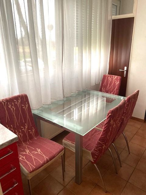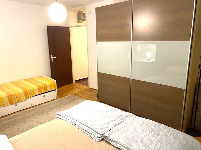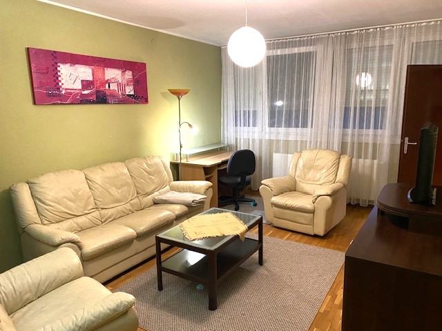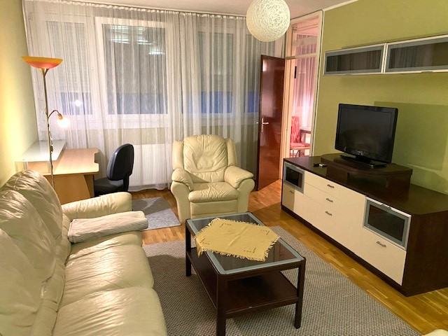 Iznajmljuje se dvosobni namješteni stan, površine 60 m2, visoko prizemlje, besplatno javno parkiralište, blizina trgovina (Konzum, Kaufland, Spar), etažno plinsko centralno grijanje, klima, brojila za struju, plin i vodu, perilice za rublje i suđe, TV, internet. Režije nisu uključene u cijenu najma.