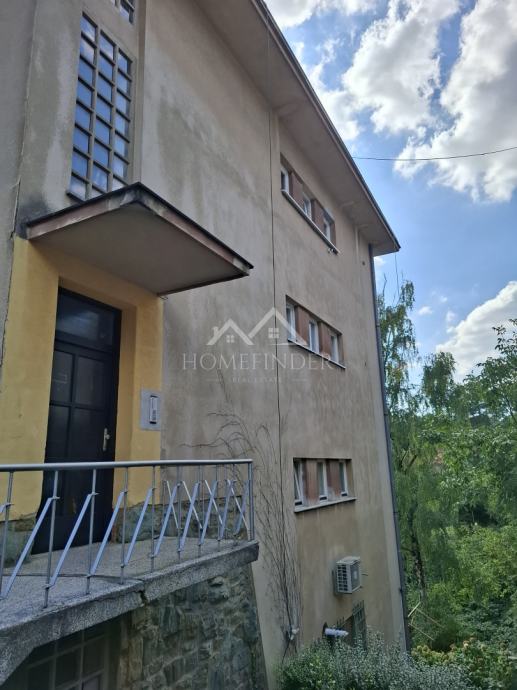 Na prodaju je potpuno opremljen i namješten 3-sobni stan, smješten prema etažiranju u vlasničkom listu u suterenu, međutim zgrada je građena stepenasto tako da ispod stana ima još jedan stan. Pozicija stana u zgradi je visinom prvoga kata i stan gleda u predivan park kojim je nekretnina okružena.