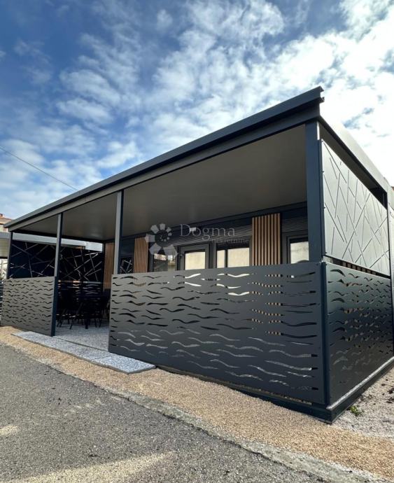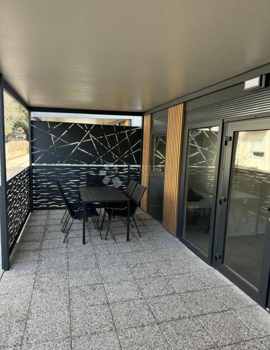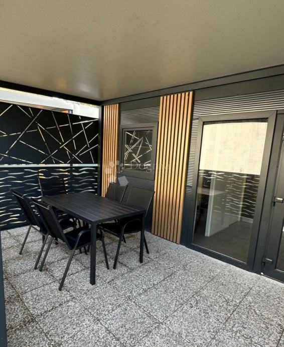 Ova optimalno namještena nekretnina ima i natkrivenu i opremljenu terasu veličine 18m2 koja je zamišljena kao produžetak dnevnog boravka na otvorenom.