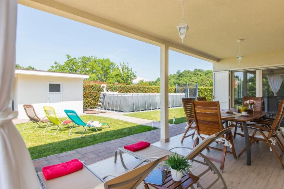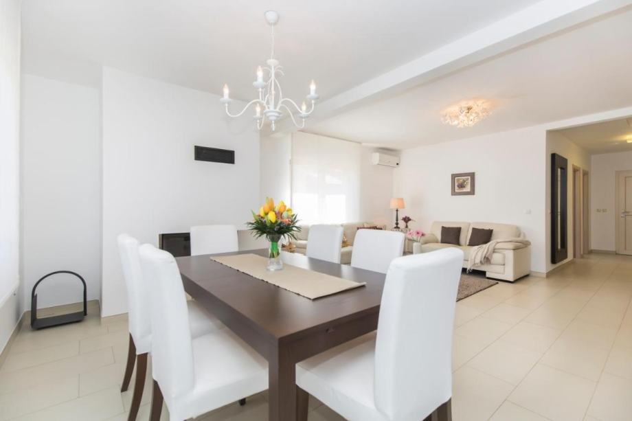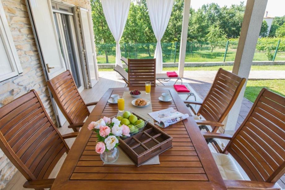 Dnevni boravak i blagovaona imaju direktan izlazak na natkrivenu terasu te dvorište, gdje možete uživati u ljetnoj kuhinji i roštilju.