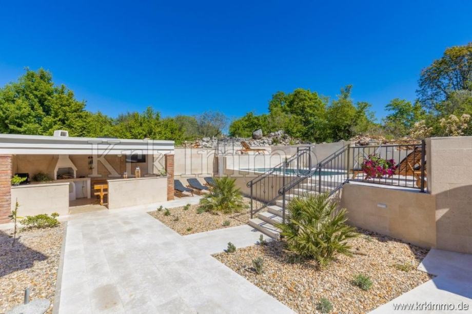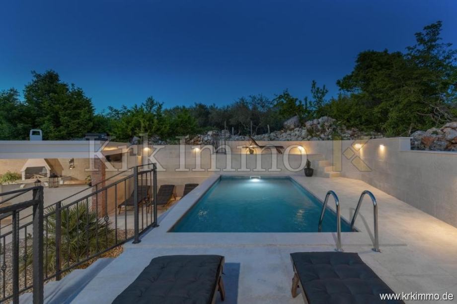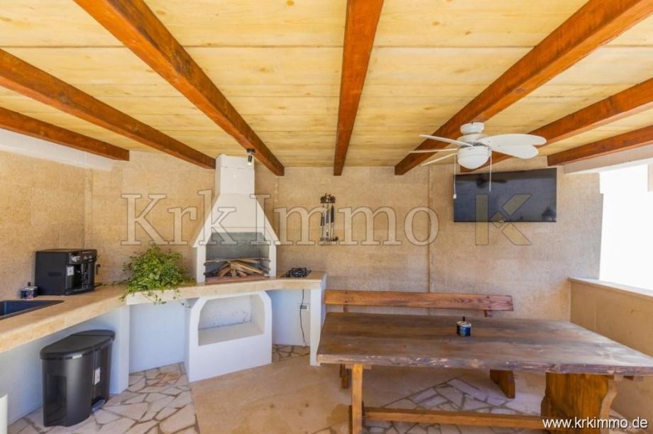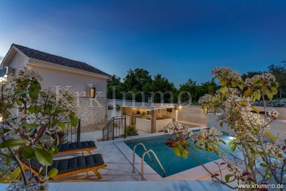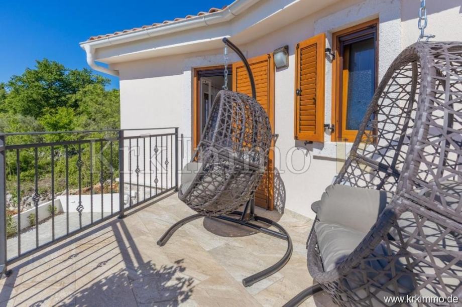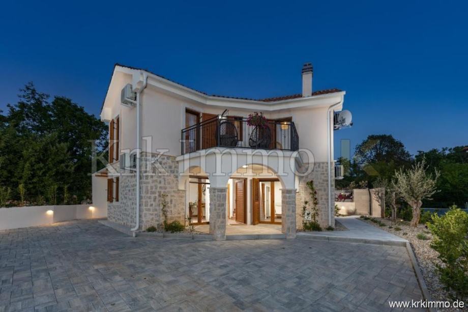 Ova samostojeća kuća u Malinskoj opremljena je klima uređajima u svakoj prostoriji, prodaje se potpuno namještena i useljiva odmah. Blizina mora, mediteranska arhitektura, i mirna lokacija čine ovu vilu jedinstvenom prilikom na tržištu nekretnina otoka Krka.