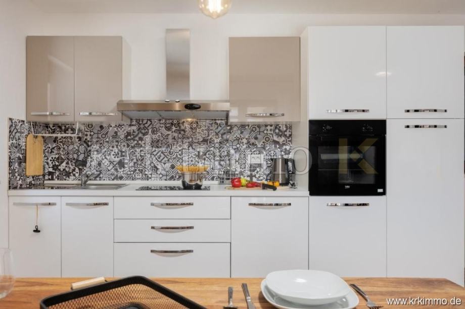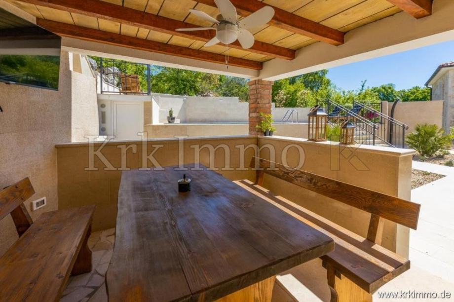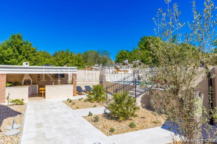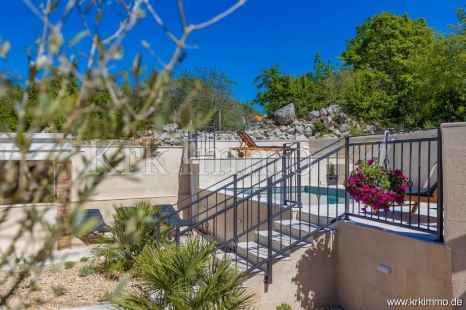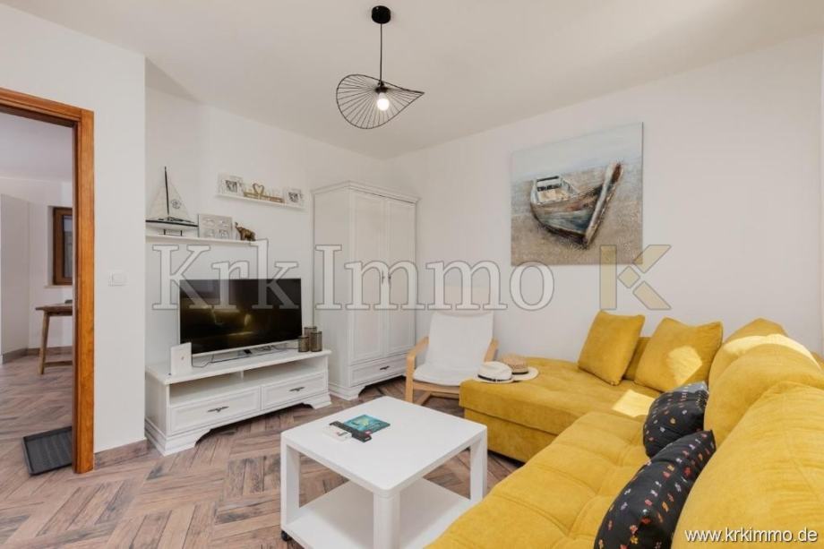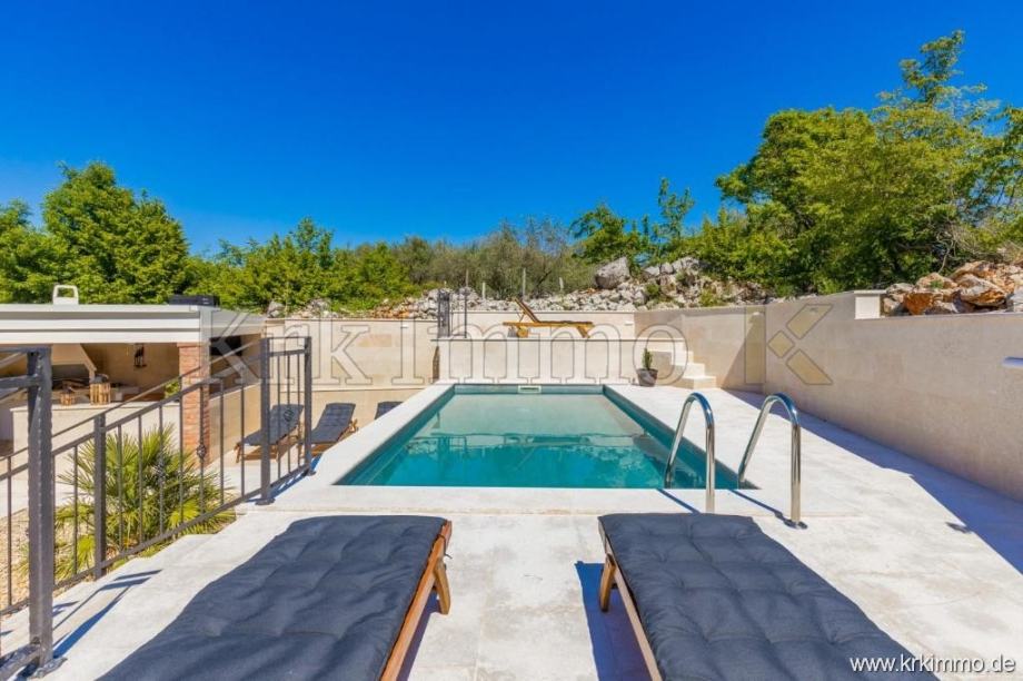 Ova samostojeća kuća u Malinskoj opremljena je klima uređajima u svakoj prostoriji, prodaje se potpuno namještena i useljiva odmah. Blizina mora, mediteranska arhitektura, i mirna lokacija čine ovu vilu jedinstvenom prilikom na tržištu nekretnina otoka Krka.