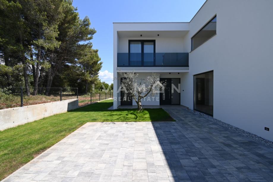 Vila se nalazi na terenu od 850 m2 na kojemu se nalazi prilaz kući i parkirna mjesta, vrt, bazen i natkrivena ljetna kuhinja s blagovaonicom.