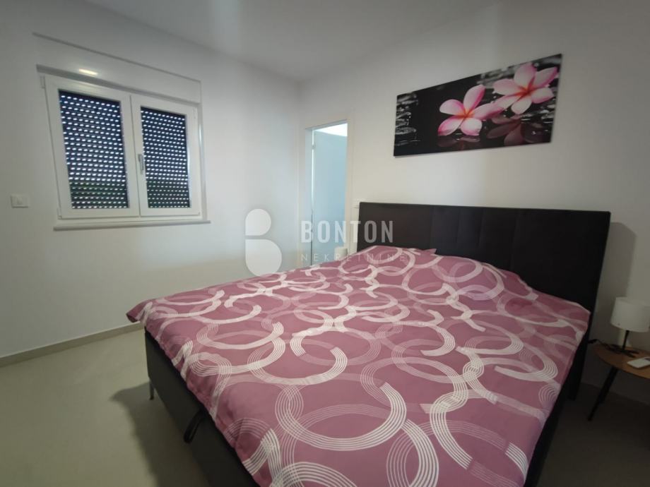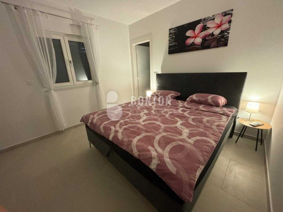 Oprema: Gradnja ciglenim termo blokom. Termoizolacija fasade 10 cm stiropor. Podne obloge su pločice. PVC prozori s električnim roletama, komarnicima i troslojnim staklom. Klima uređaj u dnevnom boravku i jednoj spavaćoj sobi. Podno grijanje na struju u kupaonici. Ulazna vrata stana su protuprovalna i protupožarna.