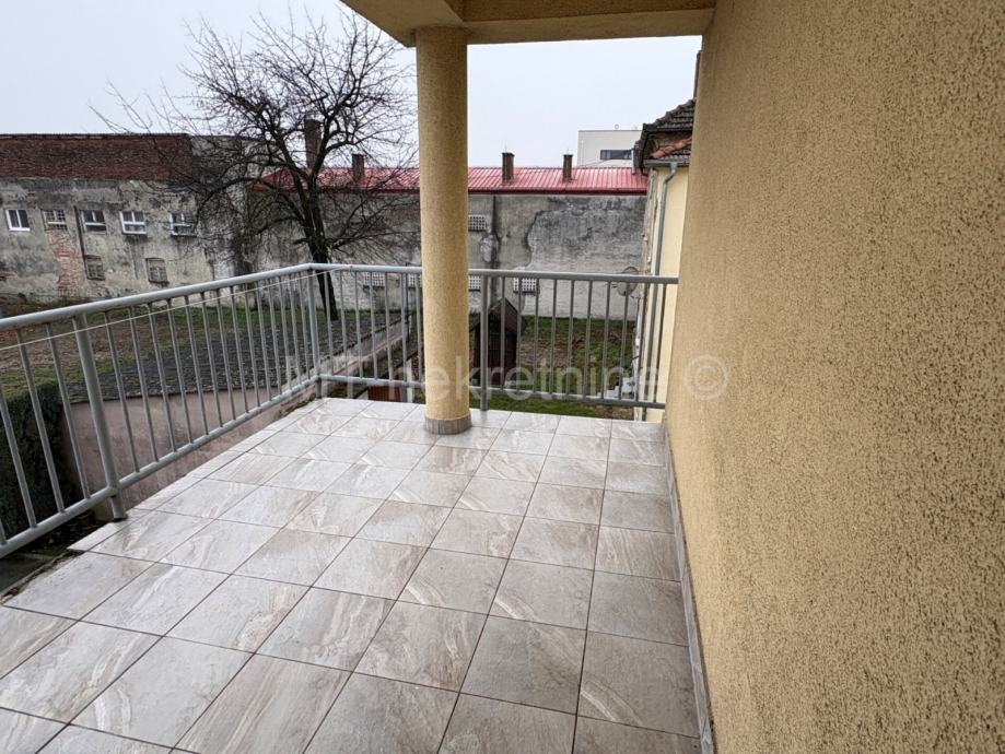 Namješteni stan za najam u Bjelovaru, Ulica Tomaša G. Masaryka 12 na prvom katu stambeno-poslovne zgrade. Stan se sastoji od hodnika, kupaonice, dvije spavaće sobe, dnevne sobe, kuhinje i terase. Površina stana je 87,90 m2, a pripada mu i garaža i ostava ukupne površine 24,37 m2.