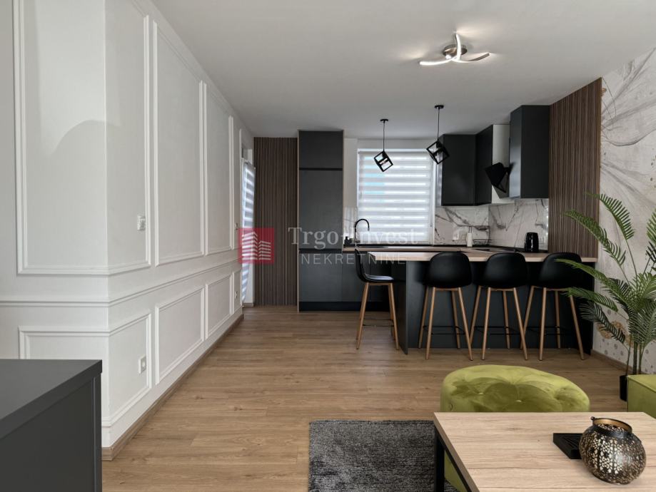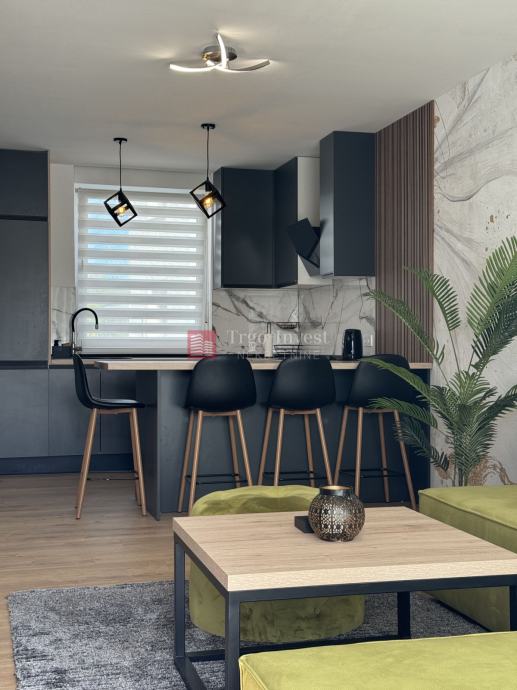 Sastoji se od ulaznog hodnika, dnevnog boravka/kuhinje/blagovaonice - otvorenog tipa, dvije spavaće sobe, kupaonice i lođe. Stanu pripada jedno parkirno mjesto.