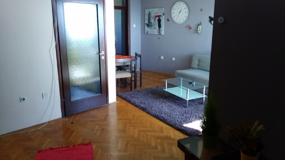 Lijepi moderan stan 78,32m2,Novo naselje Krnjevo,Medovićeva 19,sastoji se od lijepog balkona s velikim dnevnim boravkom s pogledom na more,dva wc,dvije sobe+jedna manja,nova kuhinja s blagavaonicom,ostavom,lođom i podrumom.