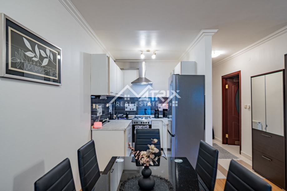 U Našicama se prodaje uredan i funkcionalan stan, upisan kao stan 12 na trećem katu, ukupne površine 64,04 m² . Prostor je organiziran vrlo praktično, s ugodnim protokom između dnevnog boravka, blagovaonice i kuhinje, pa stan djeluje prozračno i lako se prilagođava različitim životnim stilovima – od mirnog obiteljskog ritma do dugoročnog najma. Kuhinja je kompaktna i uredna, s dovoljno radne plohe i ormarića, a blagovaonski dio prirodno se nadovezuje na centralnu zonu stana.
