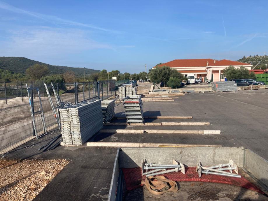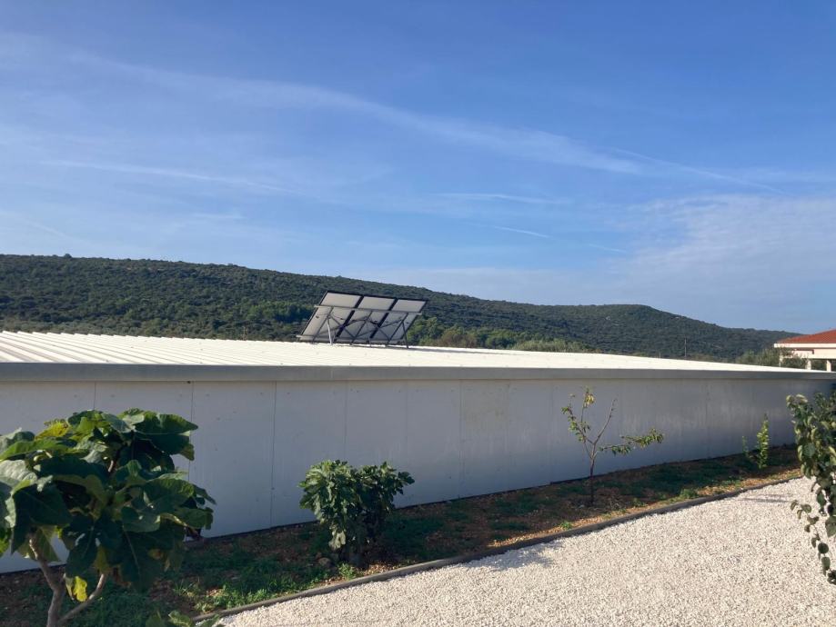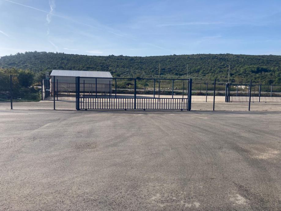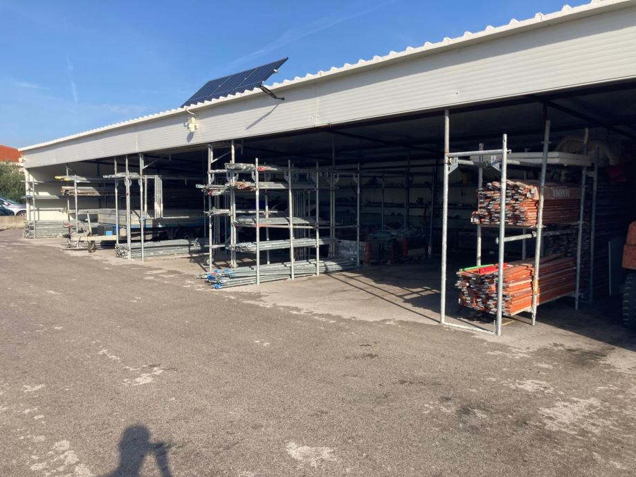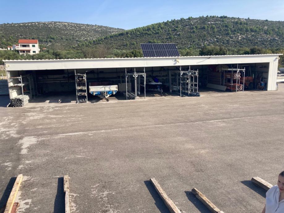Prodajemo natkriveno skladište od ~150m2 (~21 x ~7m) sa velikim zemljištem od 2301m2 (~30 x ~80m). Idealno za skladise gradevinskog matrijala ili suhi vez. Voda i struja do parcele. Kompletno je ograđena i ima troja velika klizna vrata. Solarni generator za napajanje nadzorne kamere (uključujući internet).