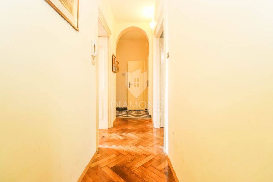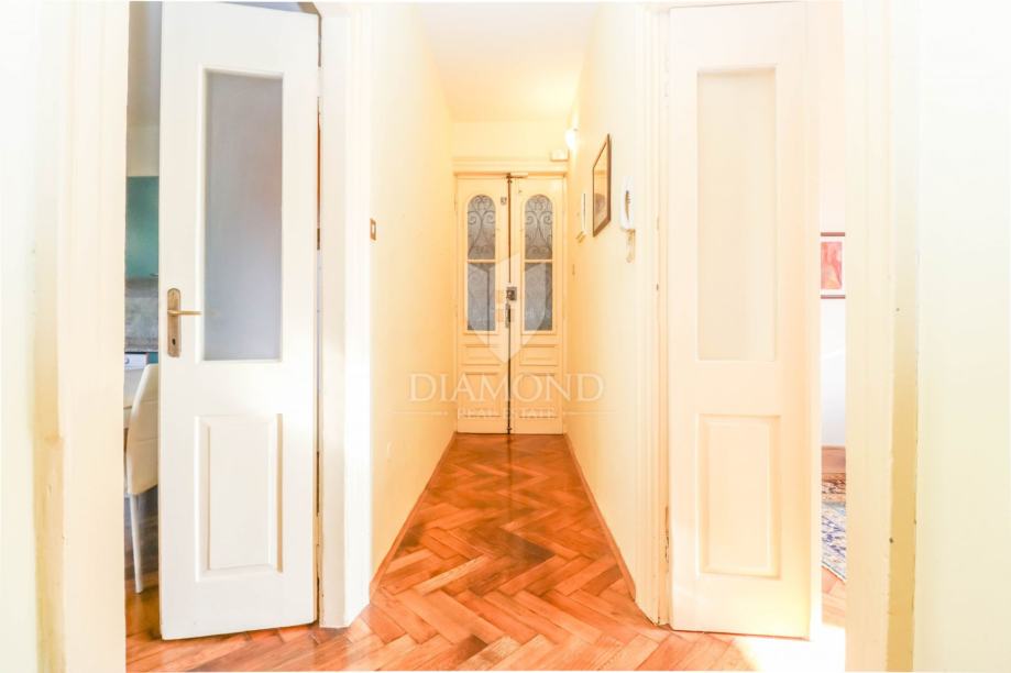 Stan se sastoji od hodnika, tri prostrane spavaće sobe, kuhinje s blagovaonicom, dnevnog boravka, kupaonice i odvojenog WC-a. Zahvaljujući velikim prozorima i orijentaciji, prostor je svijetao i prozračan tijekom cijelog dana. U dvorištu zgrade stan ima i pripadajuću šupu što dodatno povećava funkcionalnost prostora. Ova nekretnina površine 89 m² nudi klasičan šarm visokih stropova i prostranih prostorija, idealan za obiteljski život, najam ili investiciju.