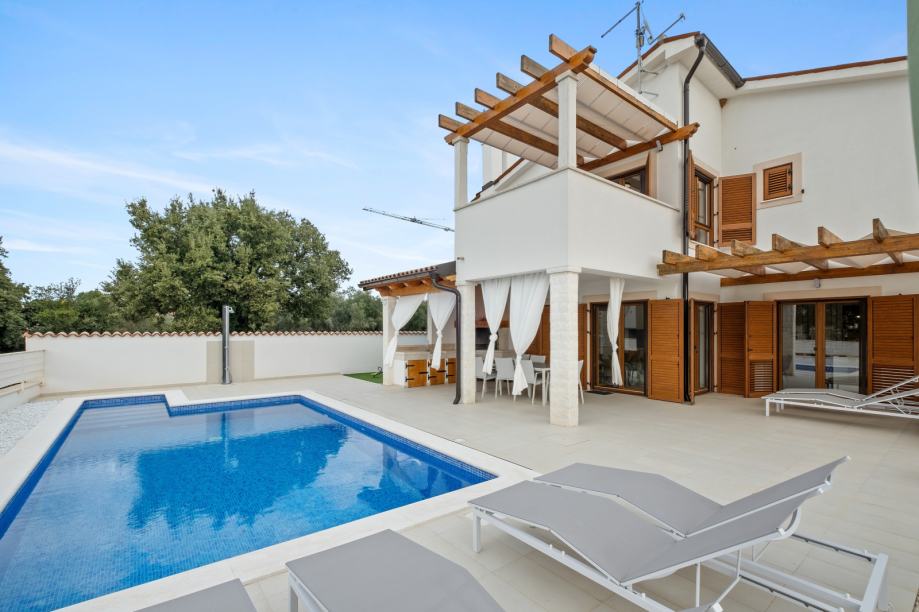 U mirnom dijelu Kavrana, na samo nekoliko kilometara od Pule i plaža, smjestila se ova moderna i kvalitetno izgrađena kuća s bazenom. Okružena prirodom, ova nekretnina nudi savršen spoj udobnosti, privatnosti i prirodnog okruženja. Idealna je za obitelj koja traži miran dom, ali i kao investicija za turističko iznajmljivanje s visokim potencijalom prihoda.