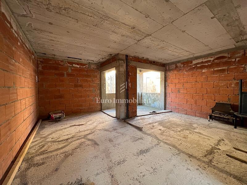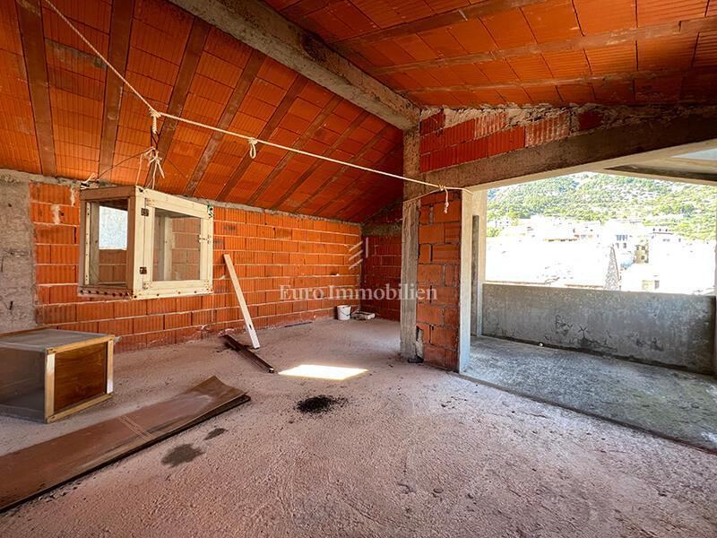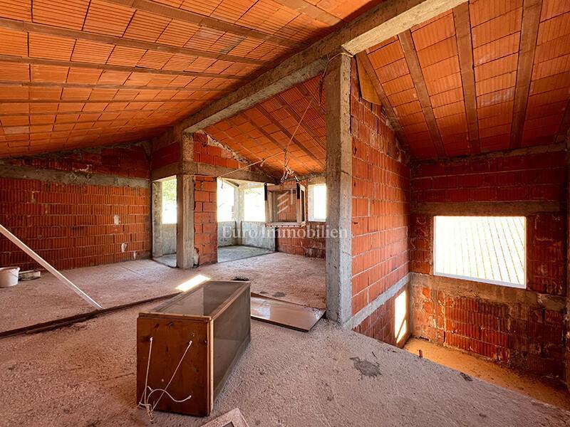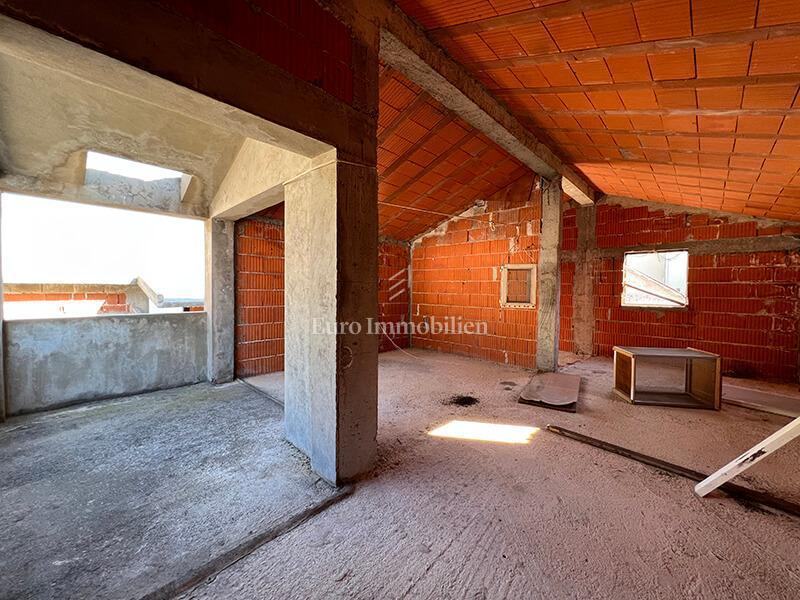 Prodaje se nedovršena apartmanska kuća, treći red od mora, Igrane. Površina kuće je 135 m2, a proteže se na tri etaže – prizemlje i dva kata. Izgrađena je na zemljištu površine 122 m2.