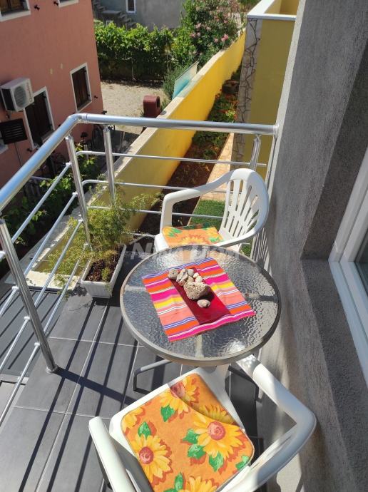 Kat: dva apartmana od kojih svaki ima jednu spavaću sobu, kuhinju s dnevnim boravkom, kupaonu i balkon.