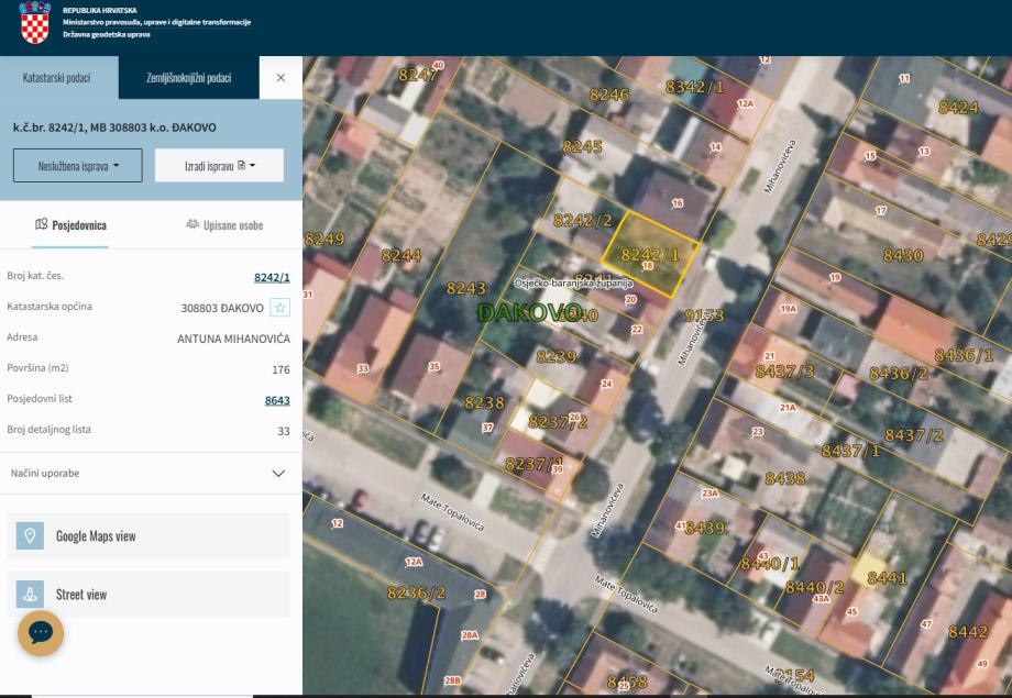 Prodajem nekretninu u Đakovu, ulica Antuna Mihanovića 18, 176m2. Kčbr 958/2. Cijena po dogovoru. (Š)